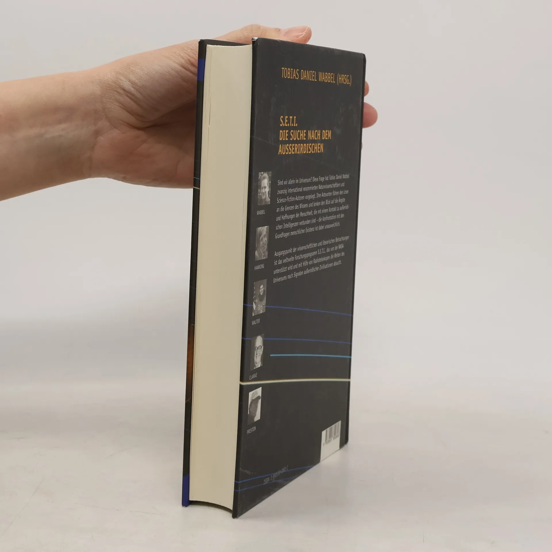 Sind wir allein? S. E. T. I. ist ein weltweites Programm, das mit Unterstützung der NASA nach Radiosignalen aus dem Weltall sucht, um die Existenz außerirdischer Intelligenzen zu beweisen. Diese Anthologie umfasst 21 Beiträge international anerkannter Wissenschaftler und Autoren, darunter Stephen Hawking, Ulrich Walter, Anthony Hewish, John D. Barrow, Arthur C. Clarke, Allen Steele und Ben Bova. Die Beiträge reflektieren die Suche nach außerirdischen Intelligenzen im Rahmen des S. E. T. I.-Programms und beleuchten die Wahrscheinlichkeit eines Kontakts sowie die möglichen Reaktionen darauf aus verschiedenen wissenschaftlichen und literarischen Perspektiven. Sie stellen zentrale Fragen: Welche Formen kann außerirdisches Leben annehmen? Wie wahrscheinlich ist es, dass wir mit den laufenden Projekten außerirdisches Leben identifizieren? Wie könnte ein Kontakt mit Außerirdischen verlaufen? Welche Auswirkungen hätte ein solcher Kontakt auf die Erde, insbesondere in Bezug auf Politik, Religion und das kollektive Bewusstsein? Der Herausgeber, Tobias Daniel Wabbel, Jahrgang 1963, ist Lektor und Übersetzer in Essen und organisiert zusammen mit Stelio Montebugnoli das erste europäische S. E. T. I.-Programm. Er ist auch Mitglied der S. E. T. I. League Inc. und der Planetary Society, die die Suche nach Leben im All unterstützt.