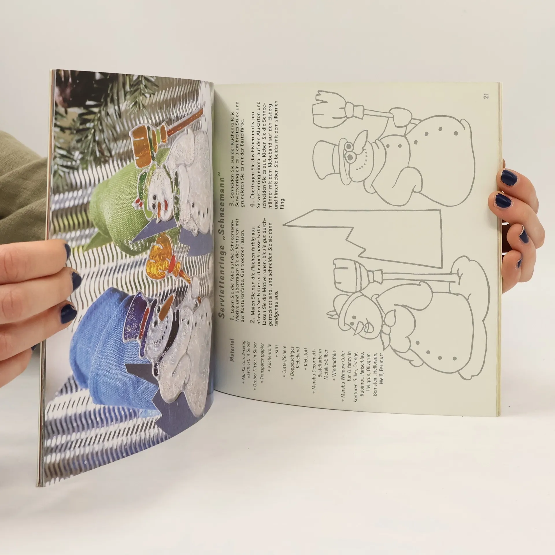 Anleitung zum Basteln von stimmungsvollen Tischdekorationen für die Weihnachtszeit: Serviettenhalter, kleine Figuren als Aufsteller oder Tellerdekoration, Windlichter, Tischleuchten; überwiegend aus Tonkarton und verschiedenen Papiersorten hergestellt