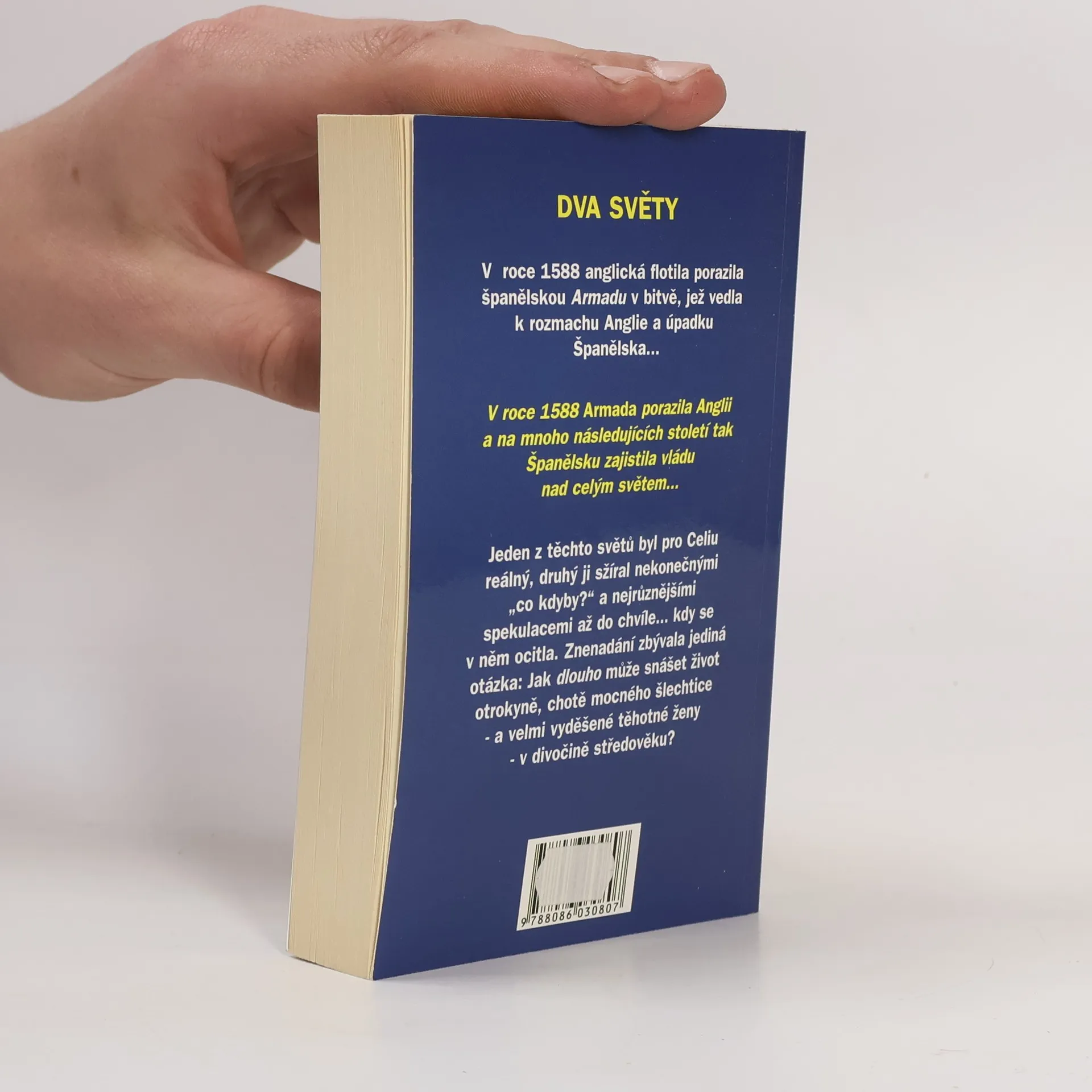 Dva světy. V roce 1588 anglická flotila porazila španělskou Armadu v bitvě, jež vedla k rozmachu Anglie a úpadku Španělska… V roce 1588 Armada porazila Anglii a na mnoho následujících století tak Španělsku zajistila vládu nad celým světem… Jeden z těchto světů byl pro Celiu reálný, druhý ji sžíral nekonečnými „co kdyby?“ a nejrůznějšími spekulacemi až do chvíle… kdy se v něm ocitla. Znenadání zbývala jediná otázka: Jak dlouho může snášet život otrokyně, chotě mocného šlechtice – a velmi vyděšené těhotné ženy – v divočině středověku?