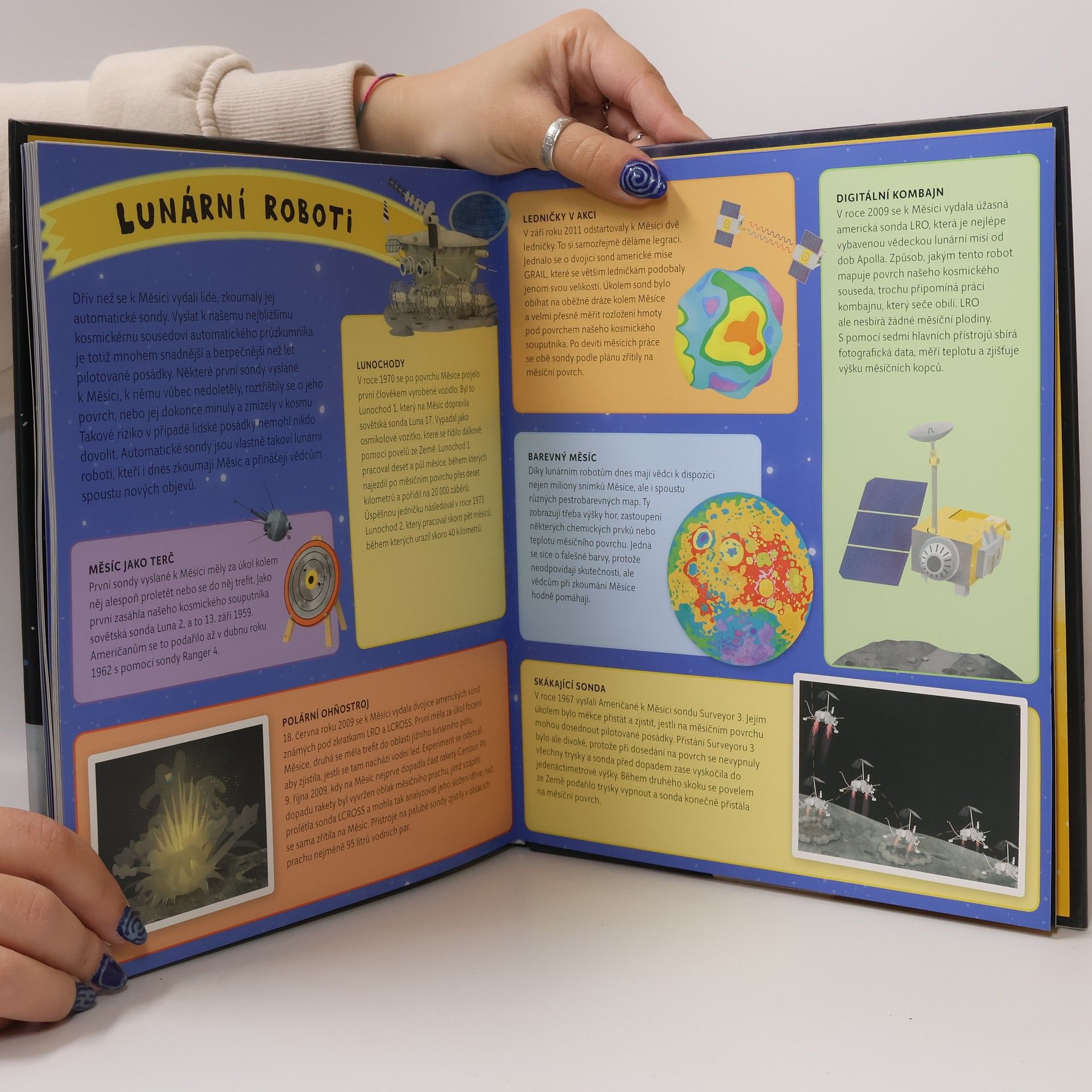 Podívejte se na noční oblohu. Co vidíte? Velikou kulatou pobledlou hlavu měsíce. Úplňkově září do všech stran. Odjakživa ten stříbrný poutník ze své výšky provokoval a dráždil lidské pokolení. Máte to také tak? Neváhejte a nastupte na velkou kosmickou výpravu, na jejímž konci tajemství měsíce odhalíte. Na šesti mapách projdete měsíc křížem krážem a v šesti kapitolách se seznámíte s prvními astronauty, prvními měsíčními cestovateli, prvními raketoplány i těmi nejmodernějšími vesmírnými vozítky.