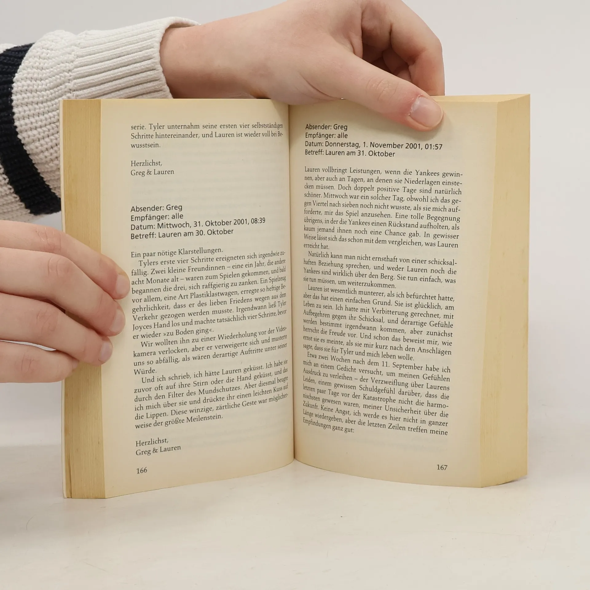 Während Lauren in einer Spezialklinik im künstlichen Koma liegt, beginnt ihr Ehemann Greg Manning sehr persönliche und anrührende E-Mails an Freunde, Bekannte und Kollegen zu schreiben, in denen er über den täglichen Überlebenskampf seiner Frau berichtet und sein eigenes Zurechtkommen mit ihrem kleinen gemeinsamen Sohn Tyler. Es ist die Geschichte eines unglaublichen Lebenswillens, eines medizinischen Wunders und die Geschichte einer ergreifenden Liebe - der Liebe zwischen Greg und Lauren: ein unvergessliches und tief bewegendes Dokument.§