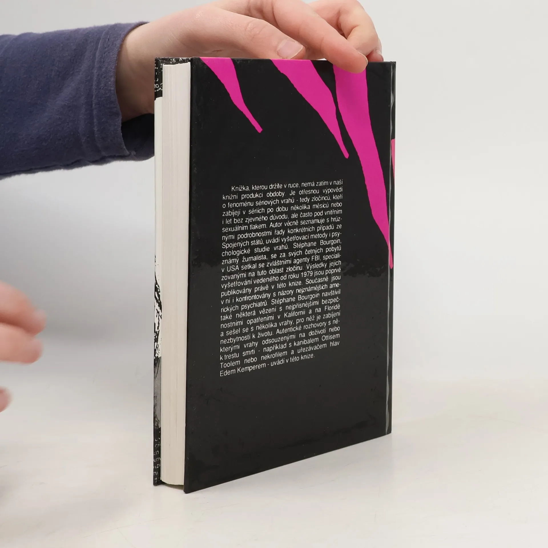 Tato kniha je věnována fenoménu sériových vrahů, kteří zabíjejí v sériích, bez zřejmého motivu, nejčastěji poháněni sexuálními pudy, a kteří své zločiny páchají během několika měsíců, někdy i let. Psychopati? Psychotici? Moderní definice sériových vrahů nezahrnuje teroristy, některé hlavy států, ani najaté zabijáky, které žene fanatismus, politika nebo peníze.