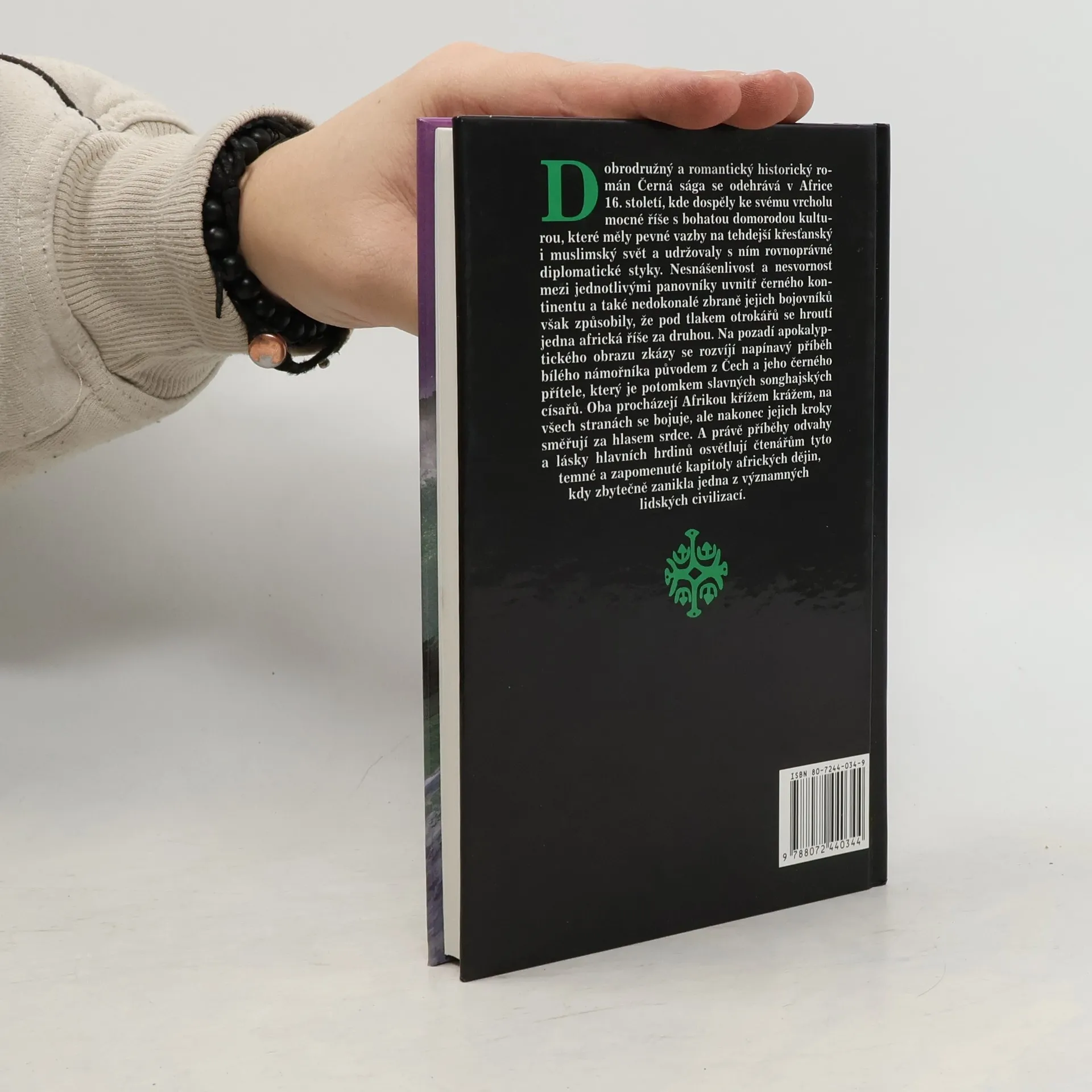 Dobrodružný a romantický historický román Černá sága se odehrává v Africe 16. století, kde dospěly ke svému vrcholu mocné říše s bohatou domorodou kulturou, které měly pevné vazby na tehdejší křesťanský i muslimský svět a udržovaly s ním rovnoprávné diplomatické styky. Nesnášenlivost a nesvornost mezi jednotlivými panovníky uvnitř černého kontinentu a také nedokonalé zbraně jejich bojovníků však způsobily, že pod tlakem otrokářů se hroutí jedna africká říše za druhou. Na pozadí apokalyptického obrazu zkázy se rozvíjí napínavý příběh bílého námořníka původem z Čech a jeho černého přítele, který je potomkem slavných songhajských císařů. Oba procházejí Afrikou křížem krážem, na všech stranách se bojuje, ale nakonec jejich kroky směřují za hlasem srdce. A právě příběhy odvahy a lásky hlavních hrdinů osvětlují čtenářům tyto temné a zapomenuté kapitoly afrických dějin, kdy zbytečně zanikla jedna z významných lidských civilizací.