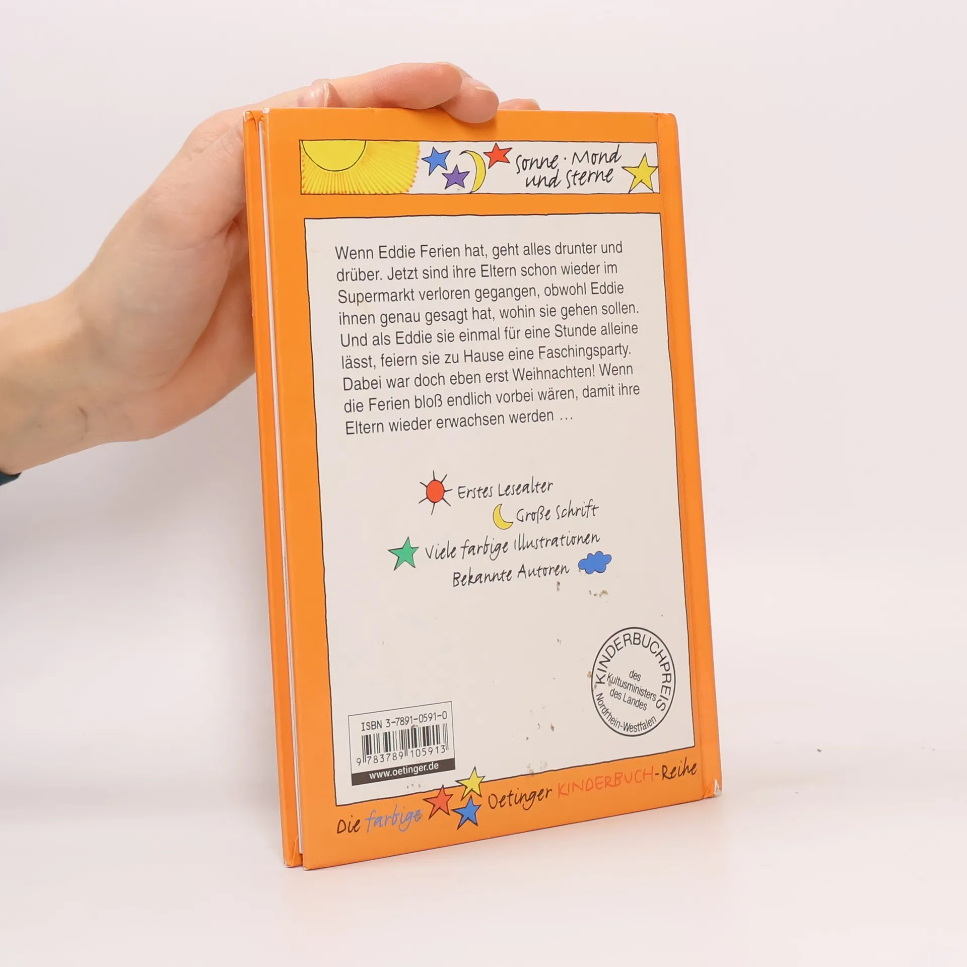 Ob das wirklich stimmt? Wenn Eddie Ferien hat, benehmen ihre Eltern sich wie Kinder. Wenn Eddie Ferien hat, geht alles drunter und drüber. Jetzt sind ihre Eltern schon zum vierten Mal im Supermarkt verloren gegangen, obwohl Eddie ihnen genau gesagt hat, wohin sie gehen sollen. Und als Eddie sich einmal traut sie alleine zu lassen, feiern sie zu Hause gleich eine große Faschingsparty. Dabei war doch gerade eben erst Weihnachten! Wenn die Ferien bloß endlich vorbei wären, damit ihre Eltern wieder erwachsen werden.