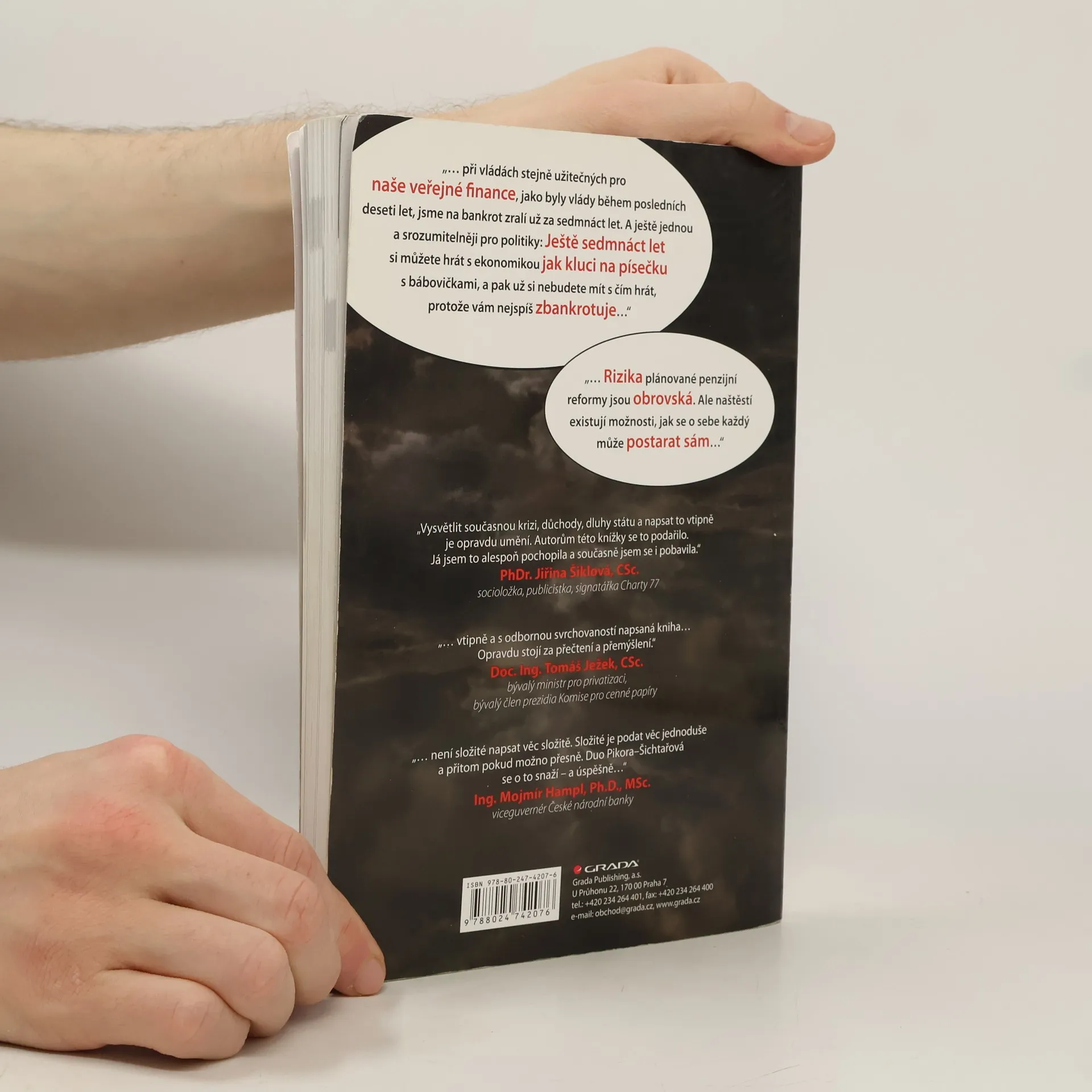 Co když je všechno jinak, než se na první pohled zdá? Ve společnosti roste napětí. Nepokoje se šíří Evropou. Jedna krize střídá druhou. Možná se blíží kolaps eurozóny. Jak to skončí? Vstupujeme do nové éry? Dá se snad v takové chvíli spoléhat na to, že se o nás postará stát? Myslíte na stáří, ale nevíte, jak v tak zvláštní době investovat bezpečně? Známí ekonomové Vladimír Pikora a Markéta Šichtařová na tyto otázky odpovídají způsobem srozumitelným každému laikovi. Boří jeden mýtus za druhým, odmaskovávají nekompetentní politiky, odhalují, co nás čeká. Nabízejí řešení, jak se o sebe a svůj důchod postarat a jak investovat bezpečně. Ale pokud čekáte nudu a nesrozumitelný odborný text, nedočkáte se. Taková kniha o ekonomice tu totiž ještě nebyla! Nerozčílí vás - spíš vám zvedne náladu před nedělním obědem. Knížka byla oceněna Cenou Grady jako nejlepší publikace roku 2011.