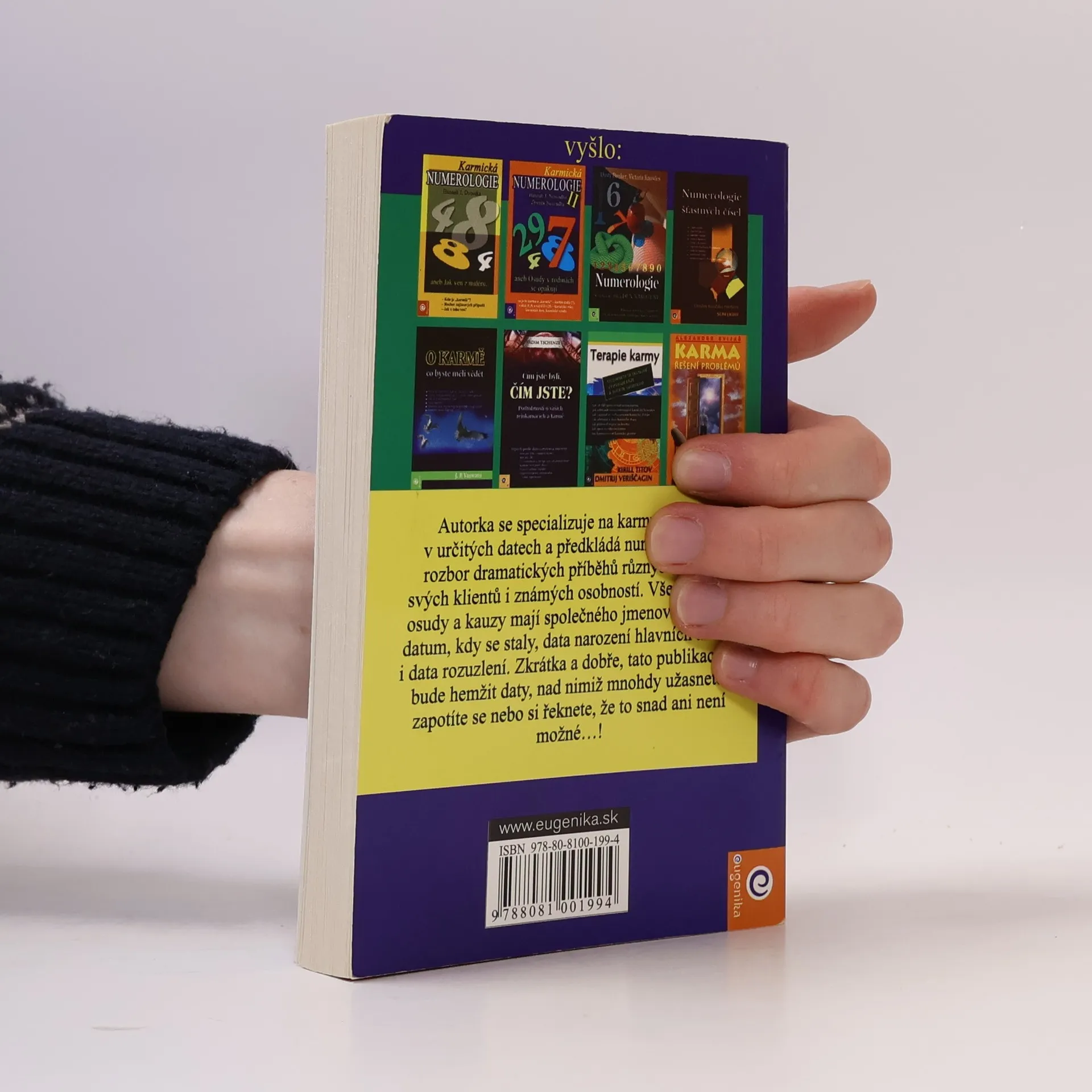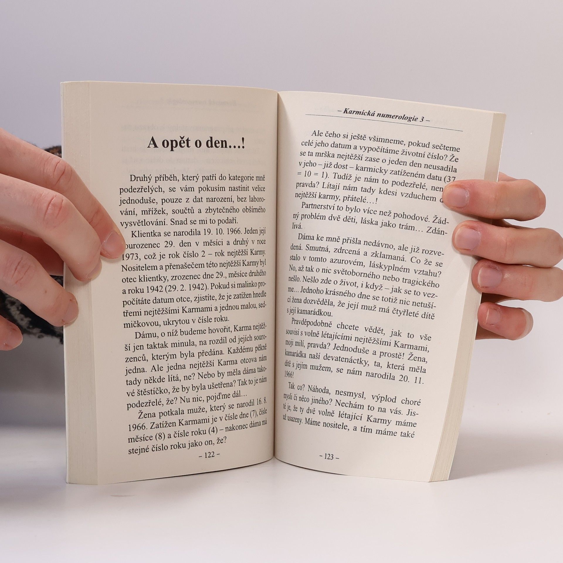 Autorka se specializuje na karmu skrytou v určitých datech a předkládá numerologický rozbor dramatických příběhů různých osob - svých klientů i známých osobností. Všechny tyto osudy a kauzy mají společného jmenovatele, a to datum, kdy se staly, data narození hlavních aktérů i data rozuzlení. Zkrátka a dobře, tato publikace se bude hemžit daty, nad nimiž mnohdy užasnete, zapotíte se nebo si řeknete, že to snad ani není možné…!