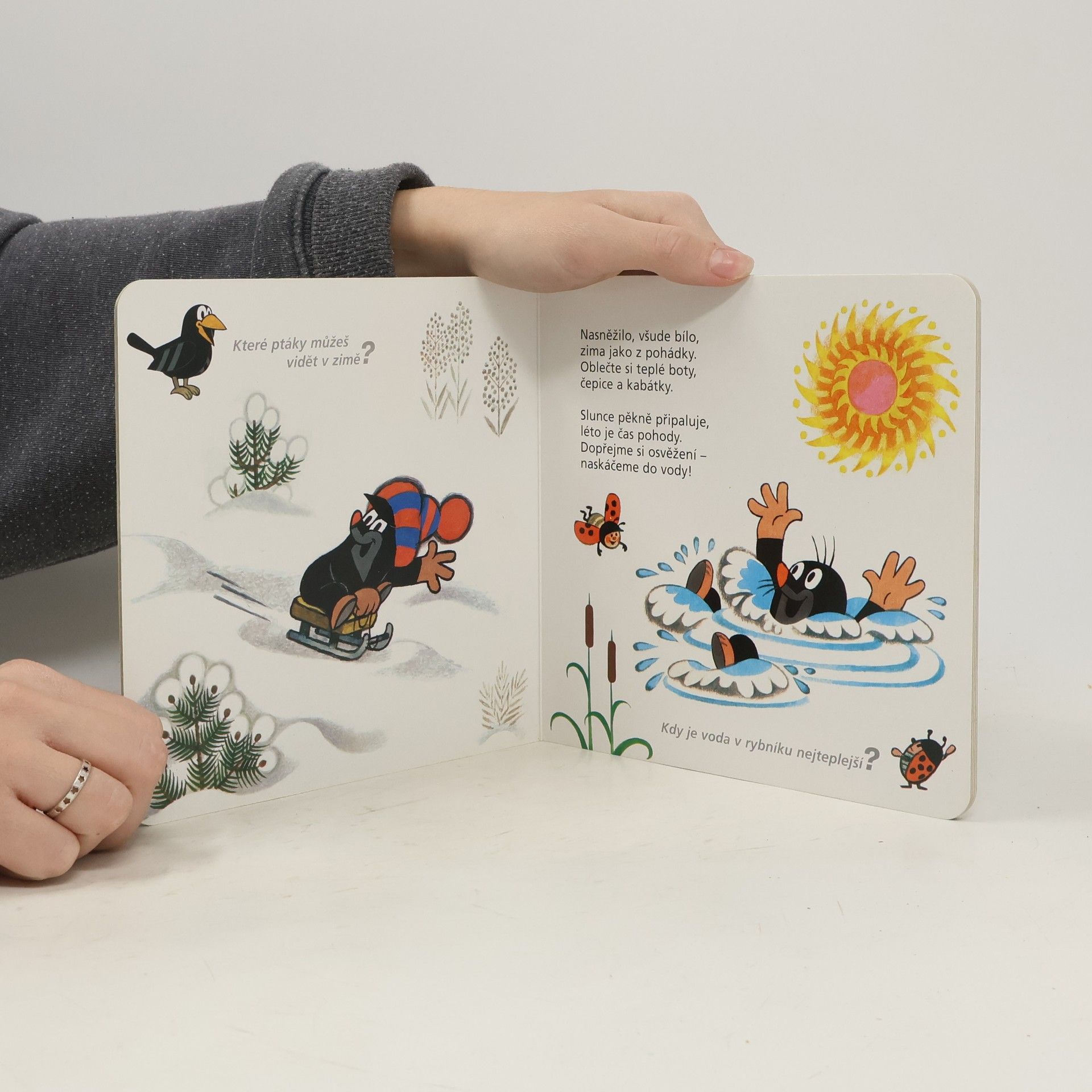 Třetí svazek poetické, hravé řady, kterou bychom mohli s trochou nadsázky nazvat první učebnicí pro nejmenší čtenáře. Tentokrát je věnována rozdílům. Veselé obrázky Zdenka Milera a nápadité rytmické verše Jiřího Žáčka pomohou dětem najít odpověď na nejrůznější otázky: Kdo je malý a kdo velký? Kdo je pomalý a kdo rychlý? Čím se liší zima od léta? A čím den od noci? V leporelu čekají na každé straně oblíbený Krtek a jeho kamarádi.