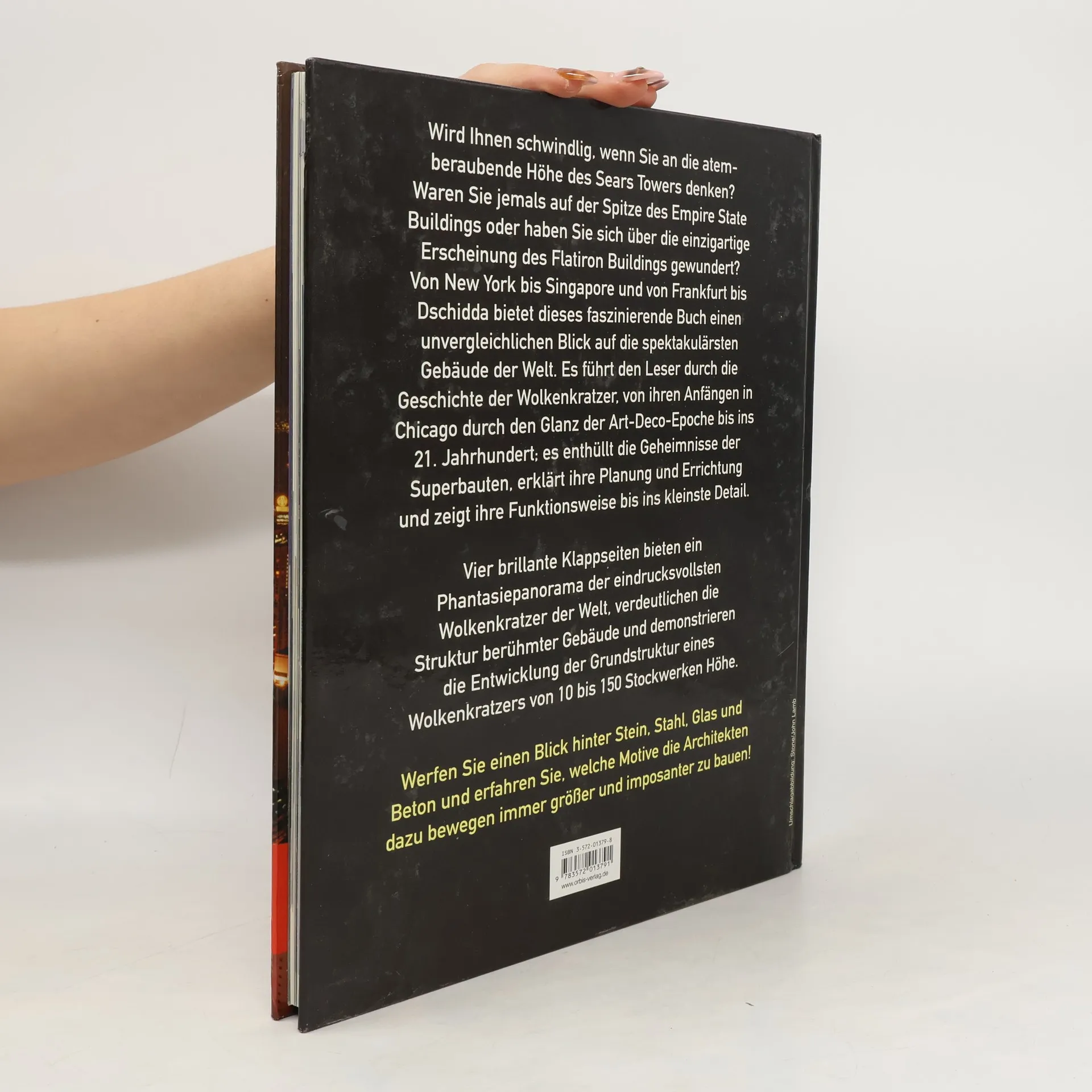 Die eindrucksvollsten Wolkenkratzer der Welt - von New York bis Singapur, von Frankfurt bis Dschidda - werden in diesem faszinierenden Bildband detailliert vorgestellt: ihre Planung und Ausführung und ihre spezifischen Strukturen und Funktionen. 120 Fotos, Skizzen und Modellzeichnungen dokumentieren die Entwicklung der Wolkenkratzer der Welt von ihren Anfängen in Chicago bis ins 21. Jahrhundert. Vier atemberaubende Klappseiten bieten zusätzlich ein Phantasiepanorama der bedeutendsten Gebäude.