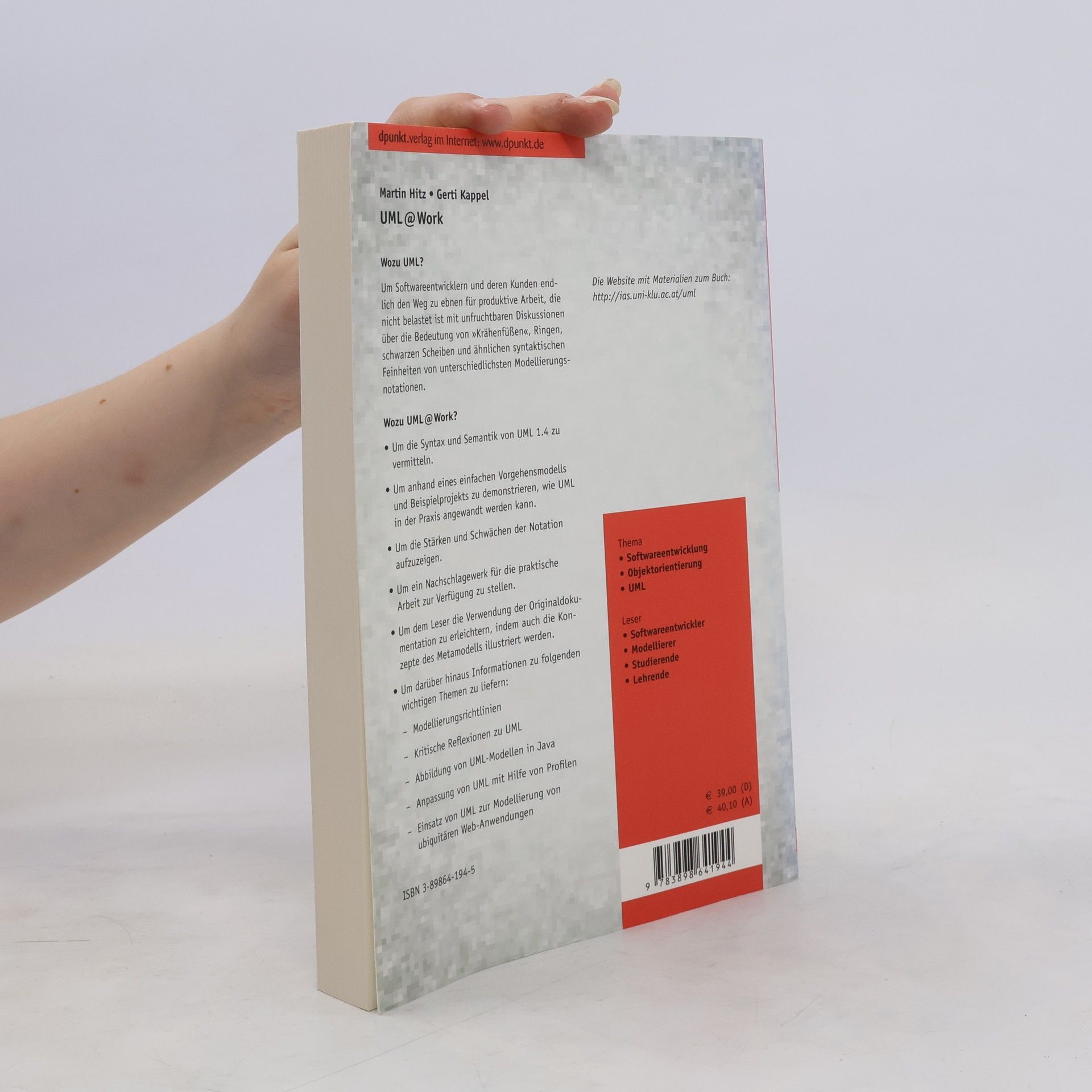 Im siebten Jahr nach der Standardisierung 1997 hat sich UML als die universelle Sprache in der Software-Modellierung etabliert. Dies ermöglicht eine effektive Kommunikation über Software-Modelle, ohne in unfruchtbare Diskussionen über syntaktische Feinheiten zu verfallen. Mit der aktuellen Version 2.0 wird nicht nur die Modellierung, sondern auch die modellgetriebene Entwicklung (MDA) zum zentralen Paradigma erhoben. Die dritte Auflage bietet eine umfassende Vermittlung der Syntax und Semantik von UML 2.0. Sie demonstriert anhand eines einfachen Vorgehensmodells und Beispielprojekts, wie UML praktisch angewendet werden kann. Zudem werden Richtlinien bereitgestellt, um die 13 Diagramme von UML 2.0 gezielt einzusetzen. Stärken und Schwächen der Notation werden aufgezeigt, und ein Nachschlagewerk für die praktische Arbeit wird zur Verfügung gestellt. Die Verwendung der Originaldokumentation wird erleichtert, indem die Konzepte des Metamodells illustriert werden. Außerdem wird das Zusammenspiel von UML, MDA und modernen Web-Technologien wie XML, Web Services und Java erläutert. Weitere Themen umfassen Modellierungsrichtlinien, kritische Reflexionen zu UML, die Abbildung von UML-Modellen in Java, die Anpassung von UML durch Profile, die Spezifikation eines UML-Profils für XML Schema und die Modellierung von ubiquitären Web-Anwendungen.