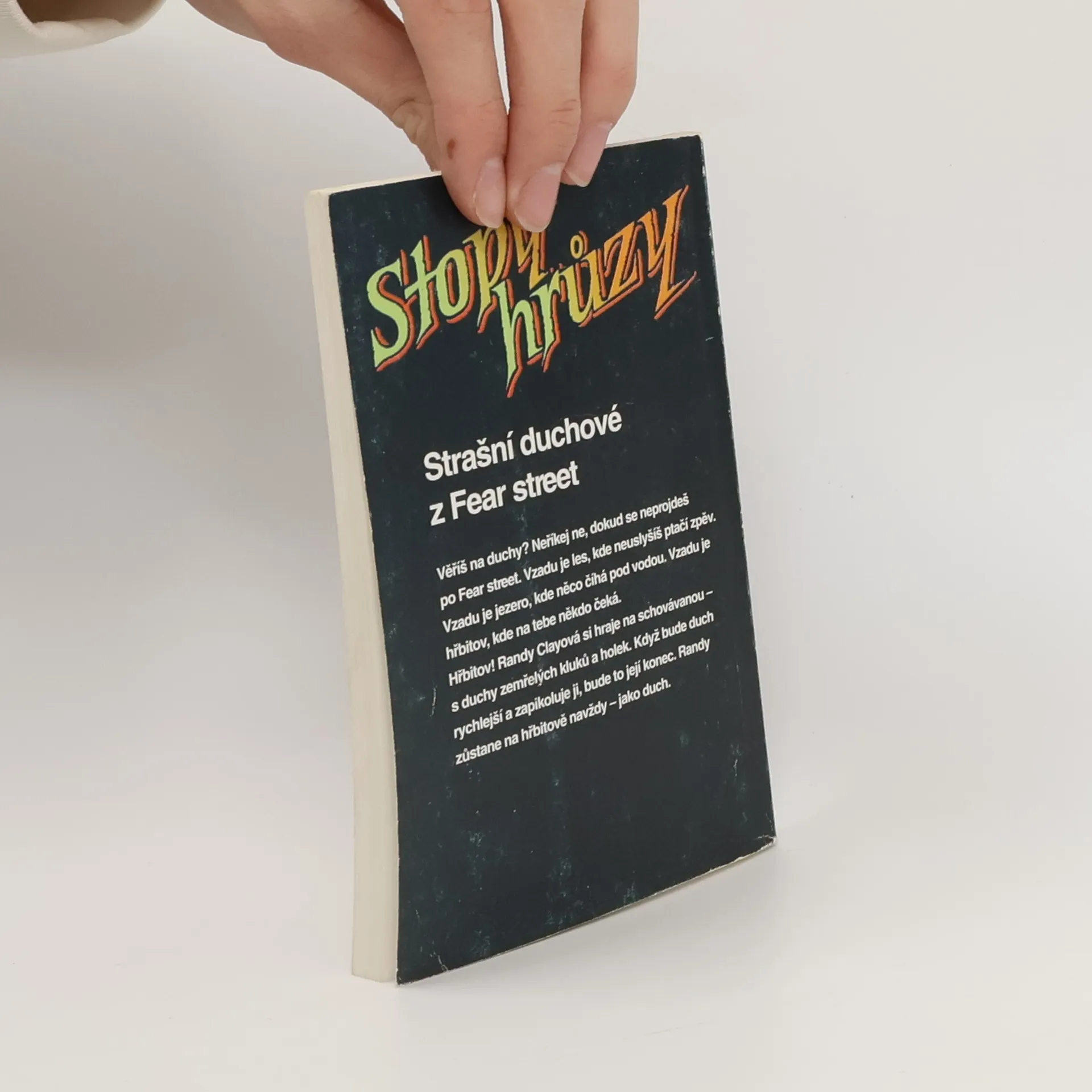 Věříš na duchy? Neříkej ne, dokud se neprojdeš po Fear Street. Vzadu je les, kde neuslyšíš ptačí zpěv. Vzadu je jezero, kde něco číhá pod vodou. Vzdau je hřbitov, kde na tebe někdo čeká. Hřbitov! Randy Clayová su hraje na schovávanou - s duchy zemřelých kluků a holek. Když bude duch rychlejší a zapikoluje ji, bude to její konec. Randy zůstane na hřbitově navždy - jako duch.