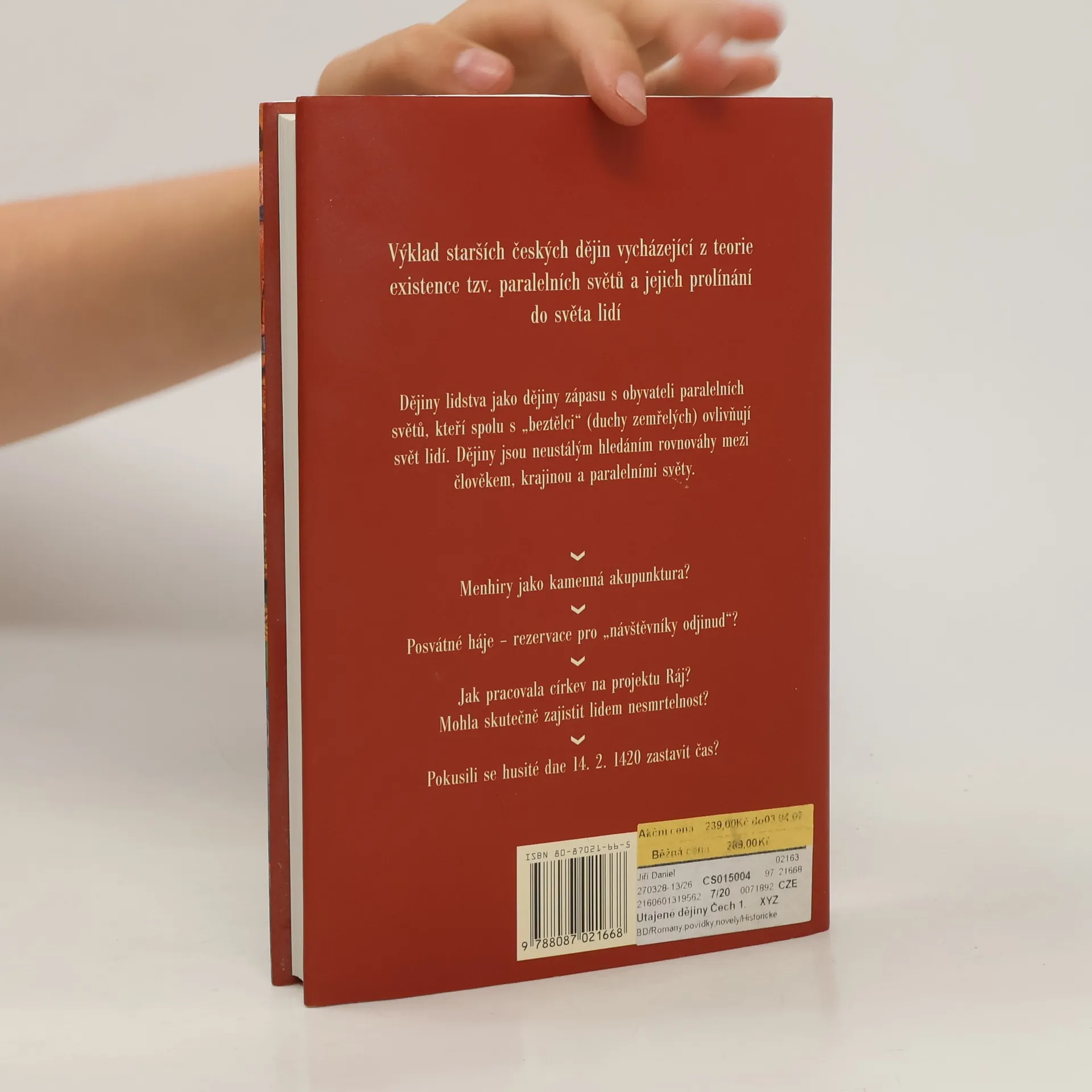 Od pravěku po husitské války (do roku 1435) Výklad starších českých dějin vycházející z teorie existence tzv. paralelních světů a jejich prolínání do světa lidí. Dějiny lidstva jako dějiny zápasu s obyvateli paralelních světů, kteří spolu s "beztělci" (duchy zemřelých) ovlivňují svět lidí. Dějiny jsou neustálým hledáním rovnováhy mezi člověkem, krajinou a paralelními světy. • Menhiry jako kamenná akupunktura? • Posvátné háje – rezervace pro „návštěvníky odjinud“? • Jak pracovala církev na projektu Ráj? Mohla skutečně zajistit lidem nesmrtelnost? • Pokusili se husité dne 14. 2. 1420 zastavit čas