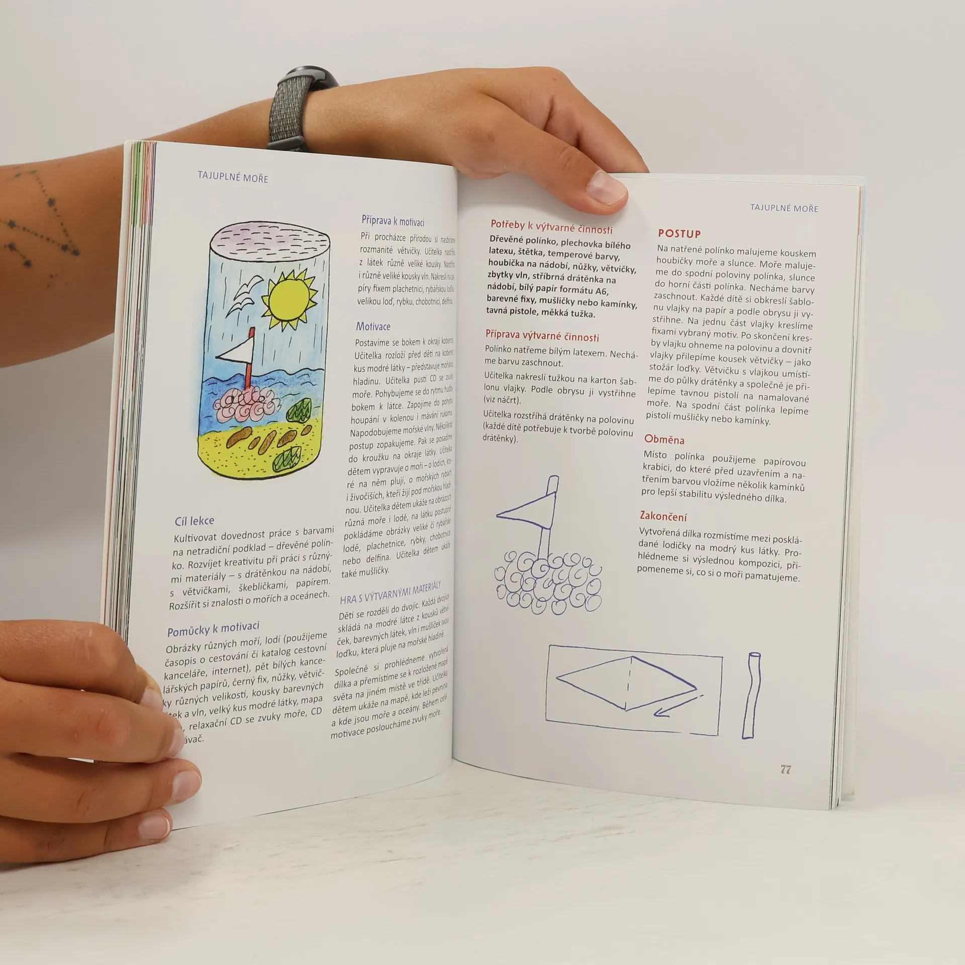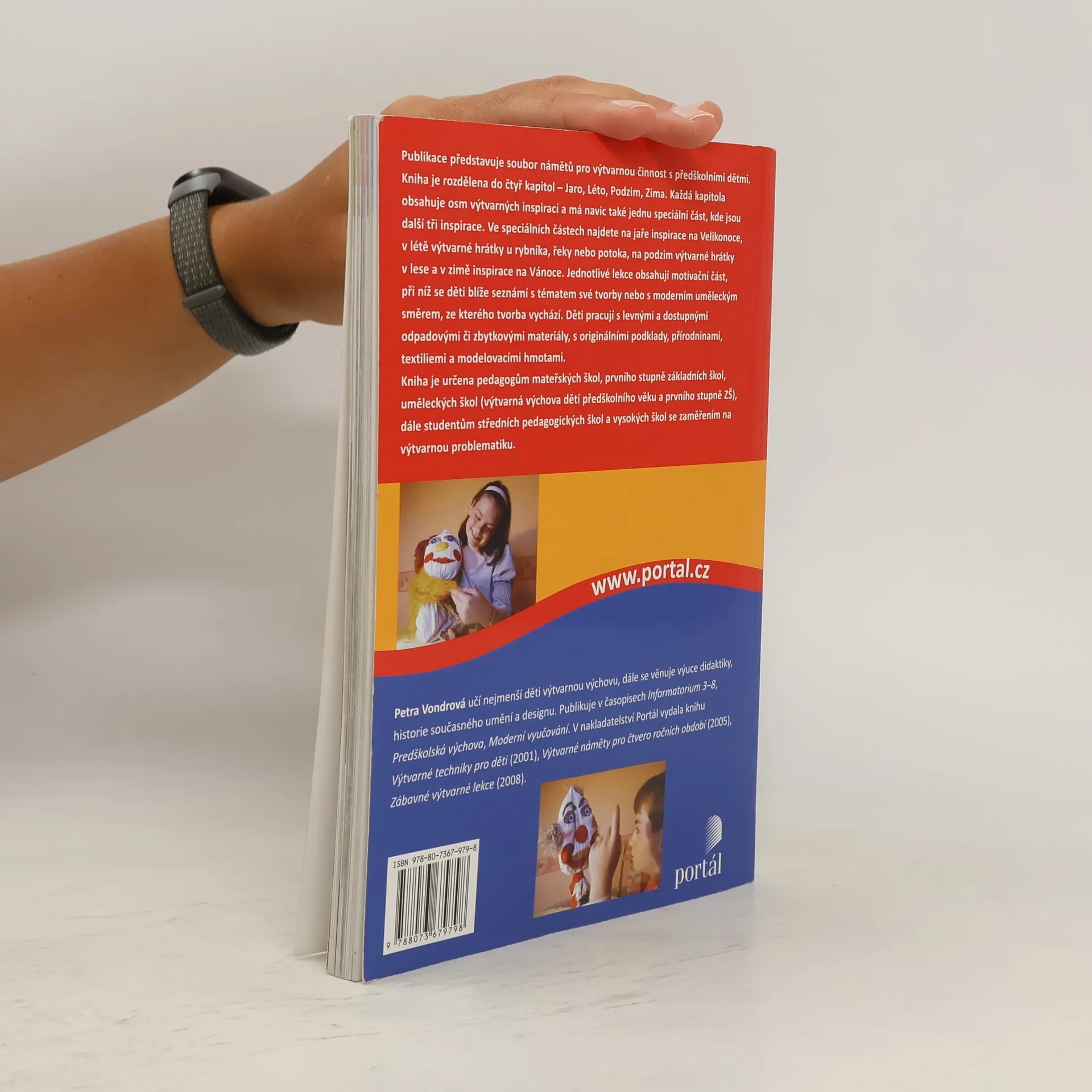 Publikace představuje soubor námětů pro výtvarnou činnost s předškolními dětmi. Kniha je rozdělena do čtyř kapitol – Jaro, Léto, Podzim, Zima. Každá kapitola obsahuje osm inspirací a má navíc také jednu speciální část, kde jsou další tři inspirace. Ve speciálních částech najdete na jaře inspirace na Velikonoce, v létě výtvarné hrátky u rybníka, řeky nebo potoka, na podzim výtvarné hrátky v lese a v zimě inspirace na Vánoce. Jednotlivé lekce obsahují motivační část, při níž se děti blíže seznámí s tématem své tvorby nebo s moderním uměleckým směrem, ze kterého tvorba vychází. Děti pracují s levnými a dostupnými odpadovými či zbytkovými materiály, s originálními podklady, přírodninami, textiliemi a modelovacími hmotami. Kniha je určena pedagogům mateřských škol, prvního stupně základních škol, uměleckých škol (výtvarná výchova dětí předškolního věku a prvního stupně ZŠ), dále studentům středních pedagogických škol a vysokých škol se zaměřením na výtvarnou problematiku.