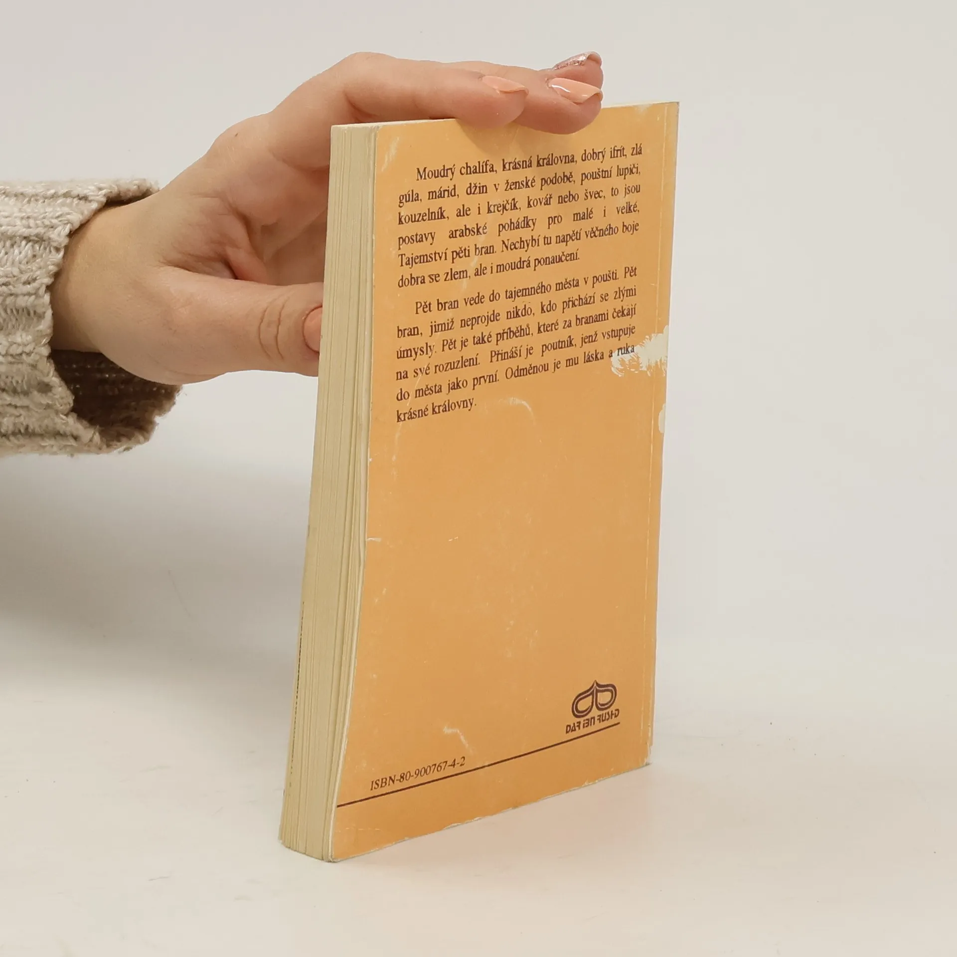 Moudrý chalífa, krásná královna, dobrý ifrít, zlá gúla, džin v ženské podobě, pouštní lupiči, kouzelník, ale i krejčík, kovář nebo švec, to jsou postavy arabské pohádky pro malé i velké, Tajemstvý pěti bran. Nechybí tu napětí věčného boje dobra se zlem, ale i moudrá ponaučení. Pět bran vede do tajemného města v poušti. Pět bran, jimiž neprojde nikdo, kdo přichází se zlými úmysly. Pět je také příběhů , které za branami čekají na své rozuzlení. Přináší je poutník, jenž vstupuje do města jako první. Odměnou je mu láska a ruka krásné královny.
