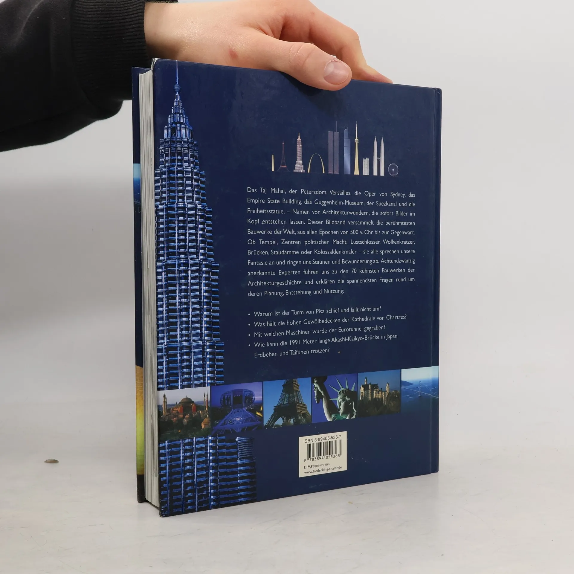 Wer hat sie nicht schon einmal bewundert, und sei es nur auf Fotos: die majestätische Größe und Schlichtheit des Potala in Lhasa, den in Marmor verewigten Liebesschmerz des Taj Mahal oder die große absolutistische Geste von Versailles! Große Bauten waren seit jeher nicht nur Ausdruck der sie prägenden Kultur und des Selbstverständnisses der Menschen, sie spiegeln immer auch die Werte einer Gesellschaft. Waren es zu Beginn vor allem Kirchen, Tempel und andere Heiligtümer, denen die größten Anstrengungen galten, so traten ihnen bald die prächtigen Paläste und Burgen mächtiger Herrscher an die Seite. Im 20. Jahrhundert schließlich waren es vor allem Bauwerke aus den Bereichen Technik und Verkehr, die die Aufmerksamkeit der Menschen erregten: die prächtige Moskauer Metro oder die kühne Golden Gate Bridge, der schlanke CN Tower in Toronto oder die Petronas Towers in Kuala Lumpur, der Panamakanal, das Sperrwerk der Oosterschelde oder, als jüngstes Megaprojekt, der Drei-Schluchten-Damm in China. Bei vielen dieser Bauten betraten Auftraggeber, Architekten und Ingenieure vollkommenes Neuland – sie sahen sich jeweils ganz individuellen Herausforderungen gegenüber, die noch nie zuvor bewältigt worden waren. So liest sich die Geschichte der Verwirklichung oftmals spannend wie ein Krimi. Ein Team von über zwei Dutzend Fachleuten, die der Herausgeber Neil Parkyn versammelte, steuerte die informativen und zugleich spannenden Texte bei.