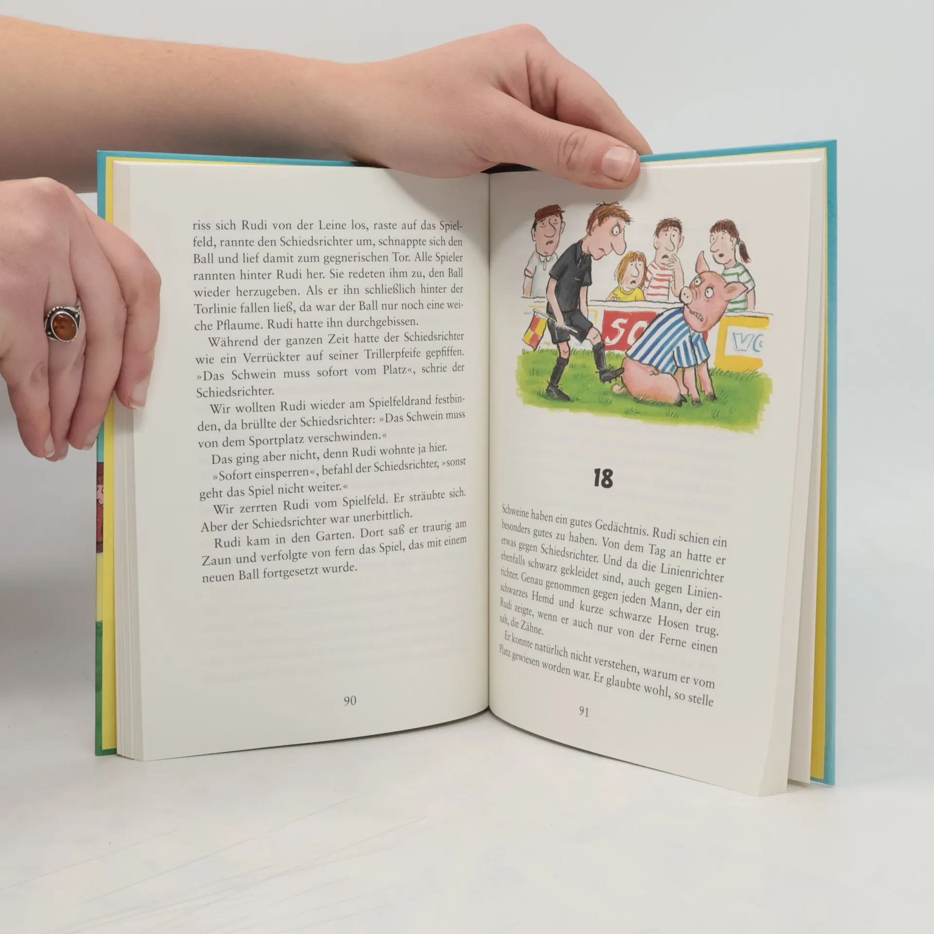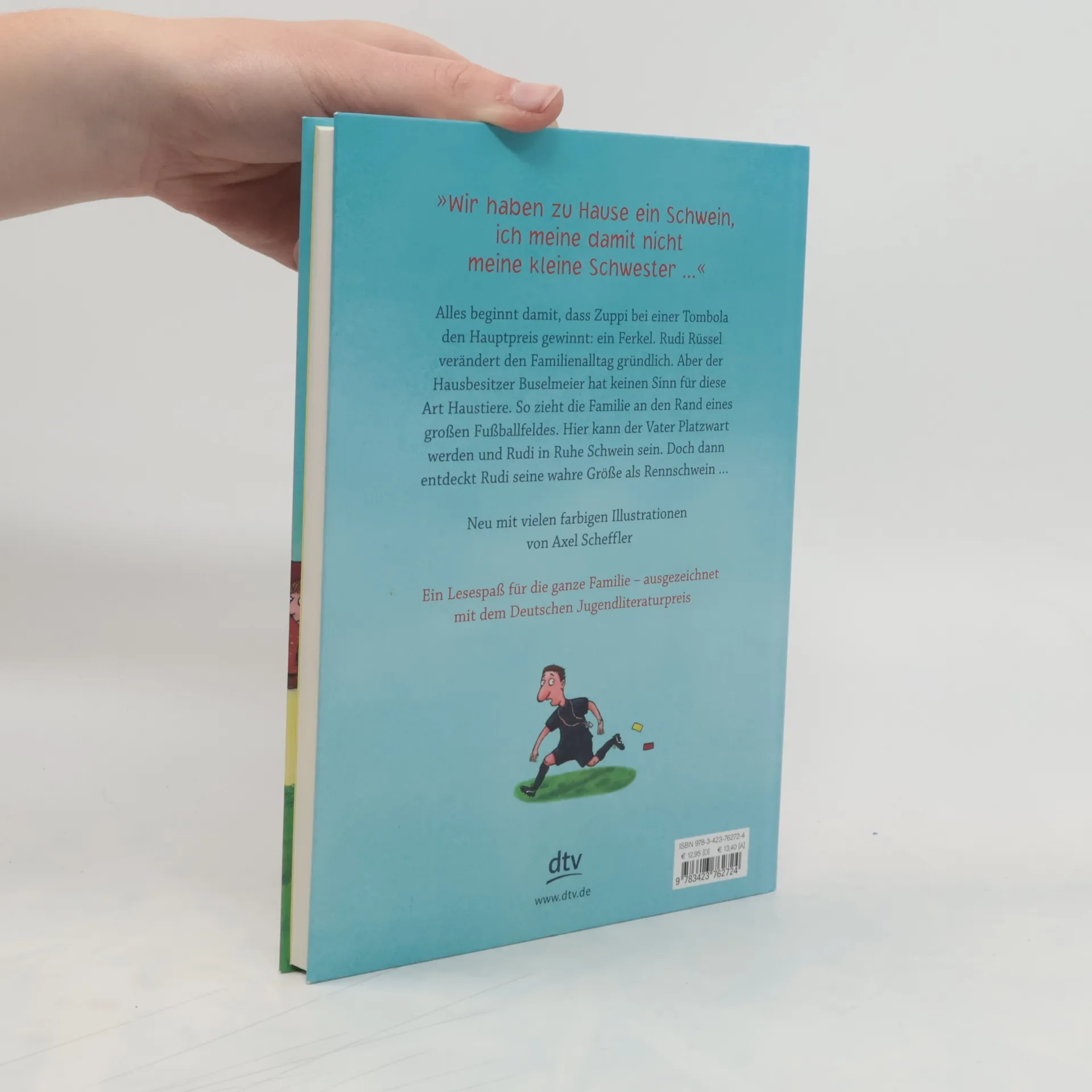 Es rennt und rennt und rennt... »Wir haben zu Hause ein Schwein. Ich meine damit nicht meine kleine Schwester ...« Alles beginnt damit, dass Zuppi bei einer Tombola den Hauptpreis gewinnt: ein Ferkel. Rudi Rüssel verändert den Familienalltag gründlich. Aber der Hausbesitzer Buselmeier hat keinen Sinn für diese Art Haustiere. So zieht die Familie an den Rand eines großen Fußballfeldes. Hier kann der Vater, ein arbeitsloser Ägyptologe, Platzwart werden und Rudi in Ruhe Schwein sein. Doch dann entdeckt Hausschwein Rudi seine wahre Größe als Rennschwein ...