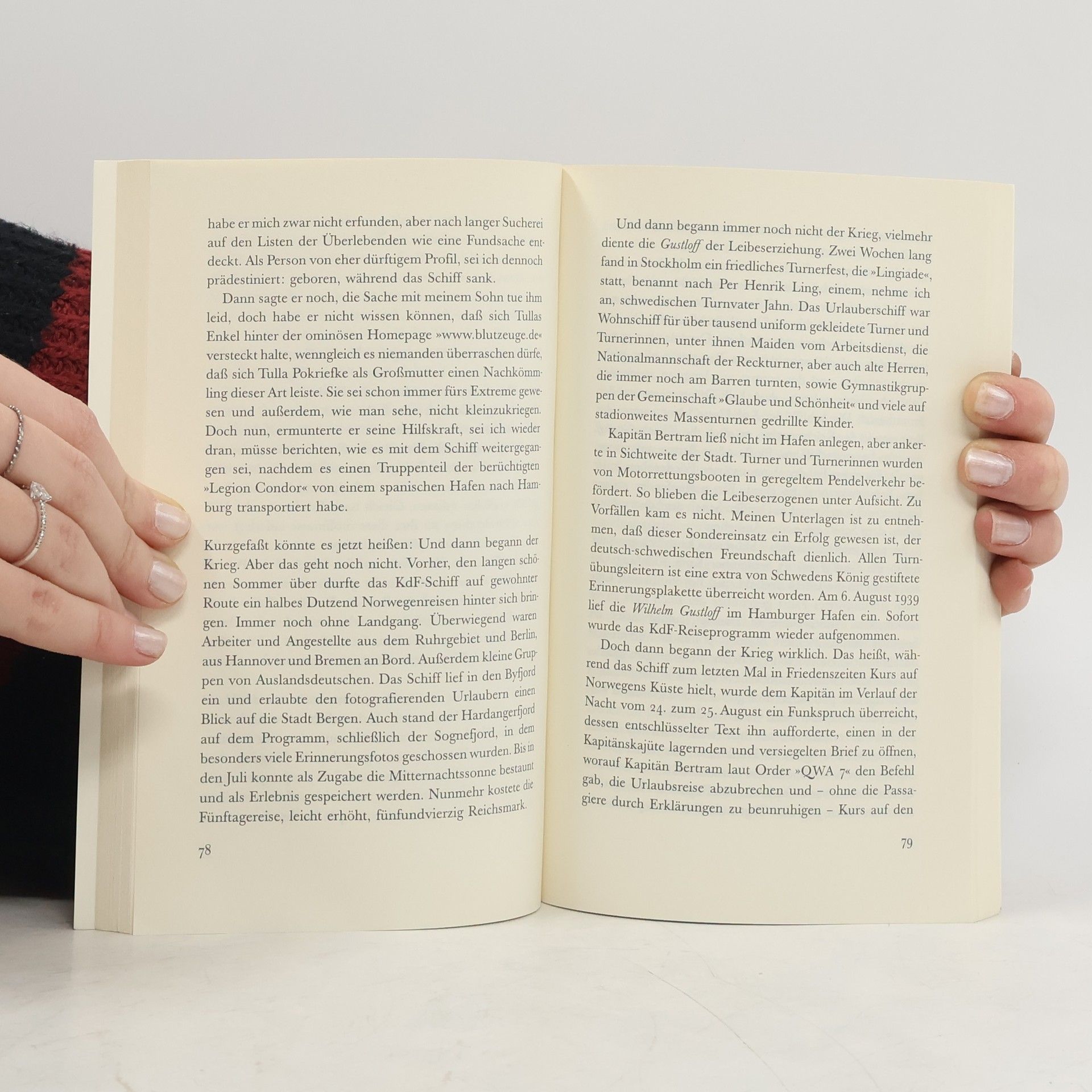 Die dramatische Geschichte vom Untergang der „Wilhelm Gustloff“ im Januar 1945 und ihre Auswirkungen bis in die deutsche Gegenwart wird hier eindringlich erzählt. 1895 wird in Schwerin ein Mann geboren, der später als „Blutzeuge“ verehrt wird und dem das Schiff seinen Namen verdankt. Am 30. Januar 1945 wird das ehemalige Kraft-durch-Freude-Kreuzschiff, das Tausende von Flüchtlingen und Soldaten transportiert, von einem sowjetischen U-Boot torpediert. Schätzungen zufolge ertrinken dabei fünf- bis neuntausend Menschen in der eisigen Ostsee. Eine der Überlebenden ist die hochschwangere Tulla Pokriefke aus Danzig, die bereits in anderen Werken des Autors vorkommt. Ihr Sohn Paul, der in jener Nacht geboren wird, wird Journalist und Chronist dieser Geschichte. Eines Tages stößt er zufällig auf eine brisante Internetseite einer „Kameradschaft Schwerin“, die sein Interesse weckt und ihn auf eine Spurensuche führt. Dabei deckt er ein menschliches Drama auf, das bis in die Gegenwart reicht und auch seine eigene Familie betrifft. Diese Erzählung verbindet persönliche Schicksale mit einem bedeutenden historischen Ereignis und beleuchtet dessen weitreichende Folgen.