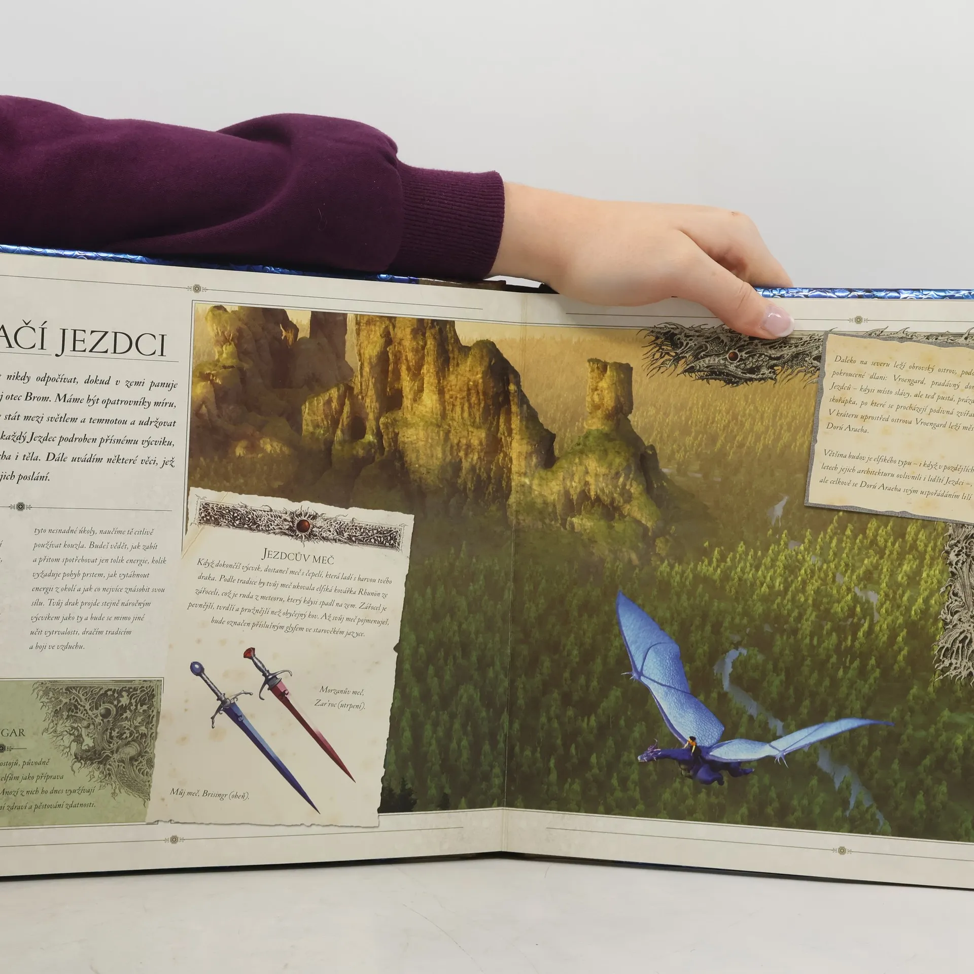 Vítej Dračí jezdče! Gratuluji ti - být vybrán mezi Dračí jezdce je veliká čest. Sestavil jsem pro tebe průvodce, který představuje nejdůležitější národy, místa a věci v Alagësii. Pečlivě si jej prostuduj! Nejedenkrát mě zachránil před jistou smrtí. A může se stát, že na těchto poznatcích bude jednou záviset i tvůj život! Už se nemůžete dočkat čtvrtého pokračování Odkazu Dračích jezdců? Nejste v tom sami. Abychom vám čekání trochu ukrátili, přinášíme vám tuto unikátní ilustrovanou encyklopedii těch nejzajímavějších míst, postav a věcí v Alegaësii, kterou sestavil autor celé série, Christopher Paolini. Knihou provází sám Eragon, který bedlivému čtenáři prozradí i několik náznaků, jakým směrem se bude příběh vyvíjet dál. Kromě ilustrací v průvodci najdete také rozkládací modely, mapy, dopisy a řadu dalších vychytávek, jako je třeba kousek pravé dračí kůže. Christopher Paolini o knize říká, že to je nejzajímavější projekt, na kterém zatím pracoval, a že si opravdu užíval možnost pozorovat, jak ilustrátoři vdechují jeho Alagaësii život. Bez průvodce po Alagaësii se neobejde žádný správný fanoušek Eragona a jeho přátel!