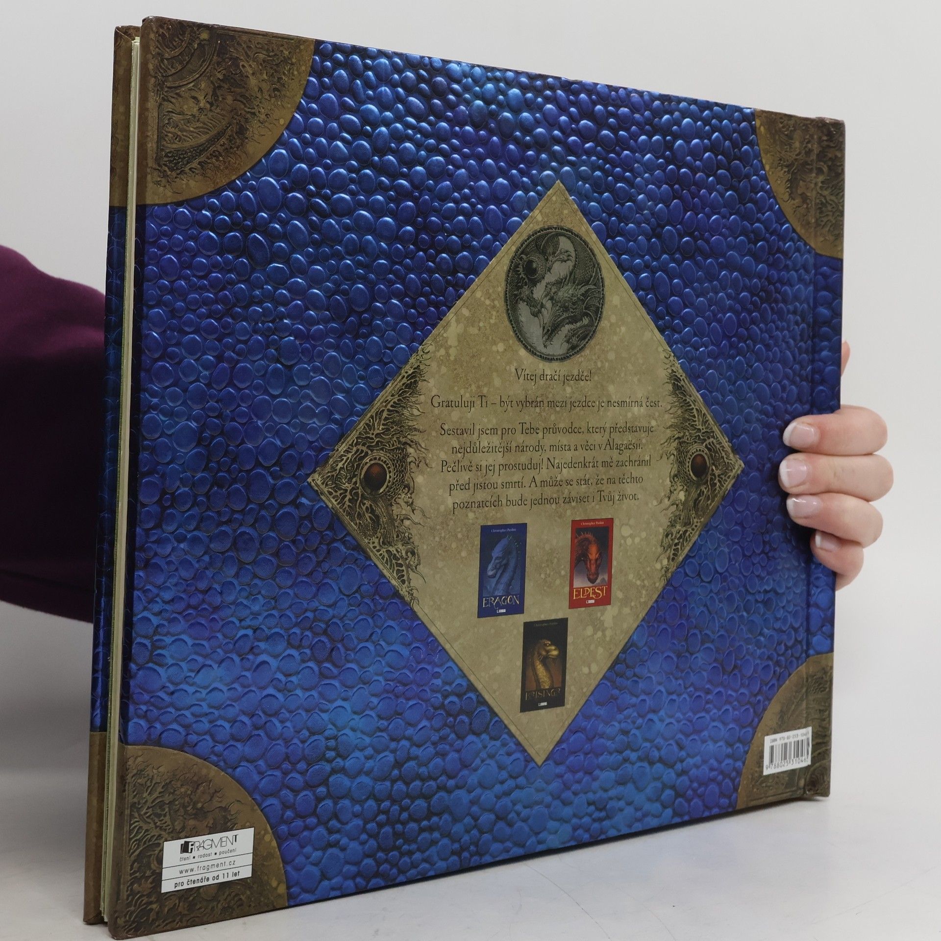 Vítej Dračí jezdče! Gratuluji ti - být vybrán mezi Dračí jezdce je veliká čest. Sestavil jsem pro tebe průvodce, který představuje nejdůležitější národy, místa a věci v Alagësii. Pečlivě si jej prostuduj! Nejedenkrát mě zachránil před jistou smrtí. A může se stát, že na těchto poznatcích bude jednou záviset i tvůj život! Už se nemůžete dočkat čtvrtého pokračování Odkazu Dračích jezdců? Nejste v tom sami. Abychom vám čekání trochu ukrátili, přinášíme vám tuto unikátní ilustrovanou encyklopedii těch nejzajímavějších míst, postav a věcí v Alegaësii, kterou sestavil autor celé série, Christopher Paolini. Knihou provází sám Eragon, který bedlivému čtenáři prozradí i několik náznaků, jakým směrem se bude příběh vyvíjet dál. Kromě ilustrací v průvodci najdete také rozkládací modely, mapy, dopisy a řadu dalších vychytávek, jako je třeba kousek pravé dračí kůže. Christopher Paolini o knize říká, že to je nejzajímavější projekt, na kterém zatím pracoval, a že si opravdu užíval možnost pozorovat, jak ilustrátoři vdechují jeho Alagaësii život. Bez průvodce po Alagaësii se neobejde žádný správný fanoušek Eragona a jeho přátel!