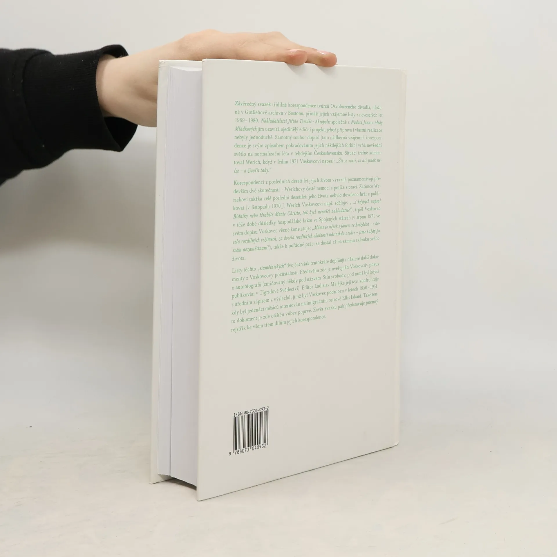 Závěrečný díl třísvazkového projektu dosud nepublikované korespondence V+W, který je strhujícím svědectvím nejen jejich originality a umělecké zralosti, ale současně odhaluje i osudy těchto významných osobností v bipolárním světě.