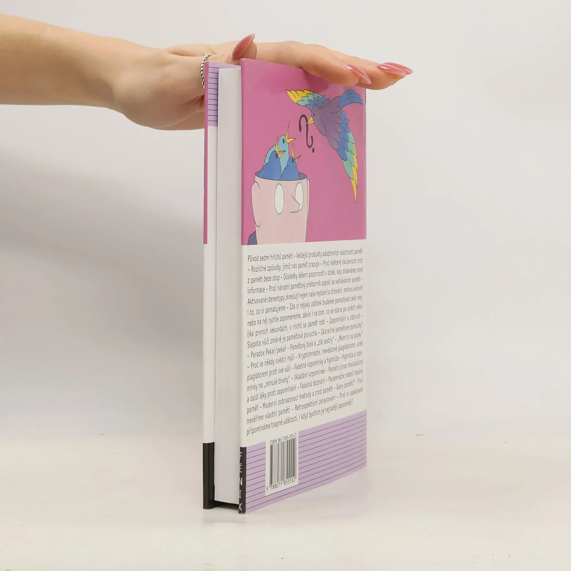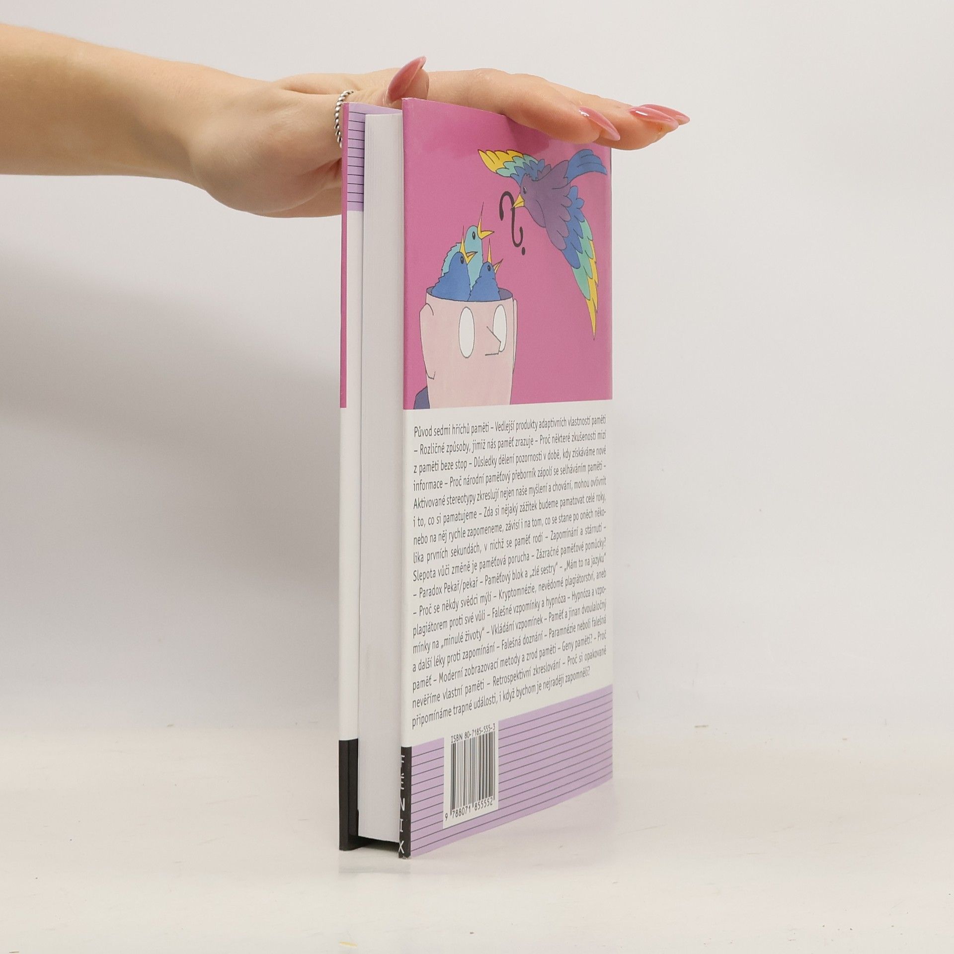 Daniel L. Schacter, význačný vědec světového jména, přináší ve své nejnovější skvěle psané knize provokativní pohled na téma, které se dotýká každého z nás v každém věku. Seznamuje čtenáře se "sedmi hříchy" -- sedmi základními poruchami --, jimiž nás zrazuje paměť. Přináší jak poznatky, které se začaly hromadit už v 19. století, tak nejnovější objevy.