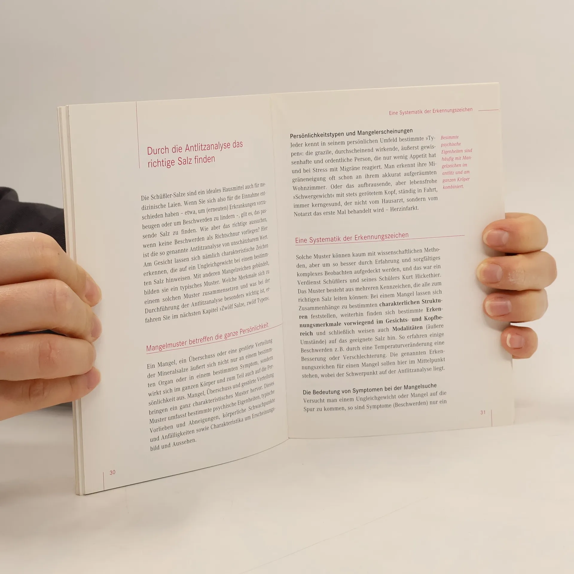 Die Therapie mit Schüssler-Salzen ist aus der Naturheilkunde längst nicht mehr wegzudenken. Kaum bekannt ist jedoch, dass Schüssler nicht nur für einzelne Beschwerden bestimmte Mineralien vorgesehen hat, sondern auch per Antlitz-Diagnostik 12 Typen definiert. Diese entsprechen jeweils den Salzen - ähnlich den Konstitutionsmitteln in der Homöopathie. Der erfahrene Homöopath und Apotheker Dr. Georg Keller hat in alten Dokumenten nachgelesen und zeigt, wie sich die Heilung durch Anwendung des persönlichen Salzes zusammen mit dem für die Beschwerden indizierten Salz beschleunigen lässt.