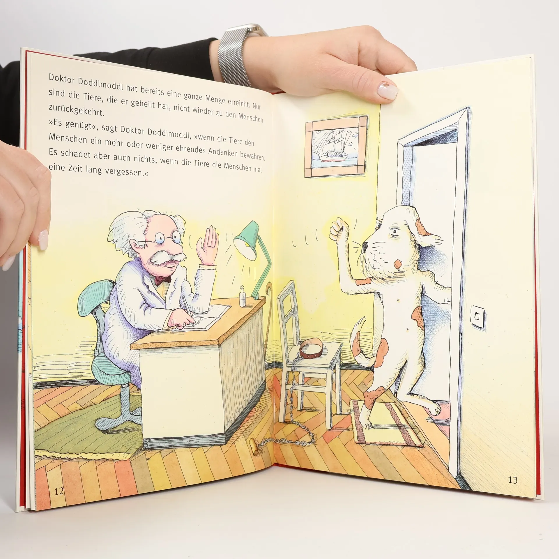 Damit Tiere sich tierisch gut fühlen§Was passiert, wenn Tiere sich vom Menschen nicht mehr gängeln lassen? Schnurres rebellische Geschichte und Herfurths heitere Bilder geben Antwort§Warum muss eigentlich ein Wellensittich unbedingt "Guten Tag!" sagen, obwohl sich seine Zunge doch viel besser fürs Zwitschern und Kreischen eignet? Die Patienten des freundlichen Tierdoktors leiden am Menschen. Aber Doddlmoddl kann helfen und heilen. Die Tiere proben vergnügt den Aufstand und besinnen sich mutig wieder auf ihre undressierte Natur. §Sie dürfen sich in Doddlmoddls Stammkneipe alles selber bestellen. Die meisten von ihnen werden geheilt. So schickt Doktor Doddlmoddl jede Woche einige Wellensittiche per Luftpost zurück in den Urwald. Auf erzkomische, unterhaltsamste Weise bringt Schnurre uns zum Nachdenken über das Verhältnis zwischen Mensch und Tier. §Egbert Herfurth, ein brillanter Handwerker, setzt die Parabel kongenial ins Bild: mit doppelbödigem Witz und markantem, unverwechselbarem Strich. Affen, Meerschweinchen, Hunde & Co tanzen vergnügt über die Seiten.§Ein Spaß mit Hintersinn in herrlichen Bildern!