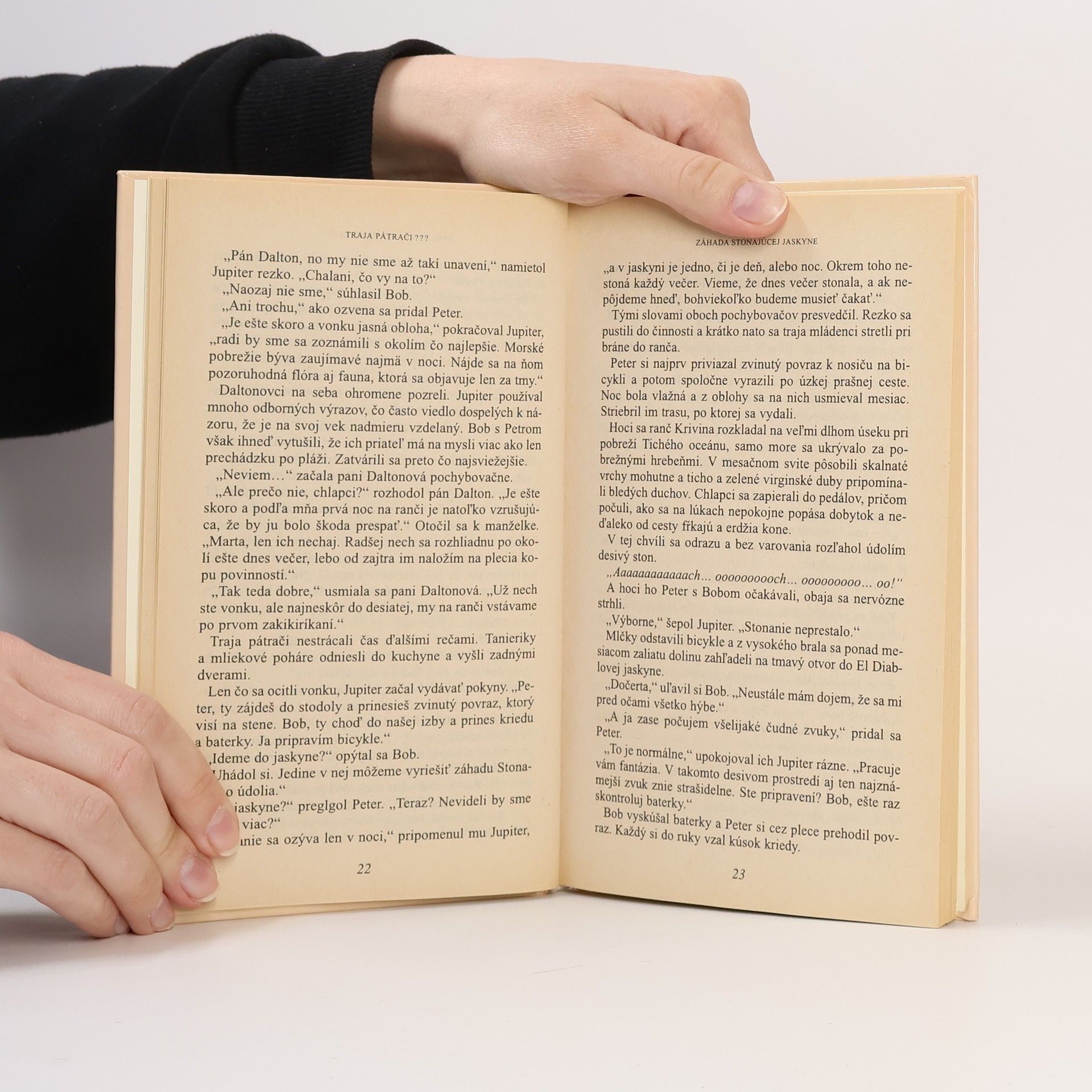 V mene výstižného hesla konajú Traja pátrači aj v tomto prípade. Na podnet Petrovho otca prichádzajú na ranč pána Daltona, aby sa stali svedkom hrozivého stonania vychádzajúceho z útrob Čertovej hory. Poverčivý mexickí robotníci tvrdia, že sa isto prebudil strašný duch v temnom jazierku Stonajúcej jaskyne. Podľa inej legendy dodnes žije v jaskyni udatný bojovník El Diablo, ktorého činy pripomínali Robina Hooda.