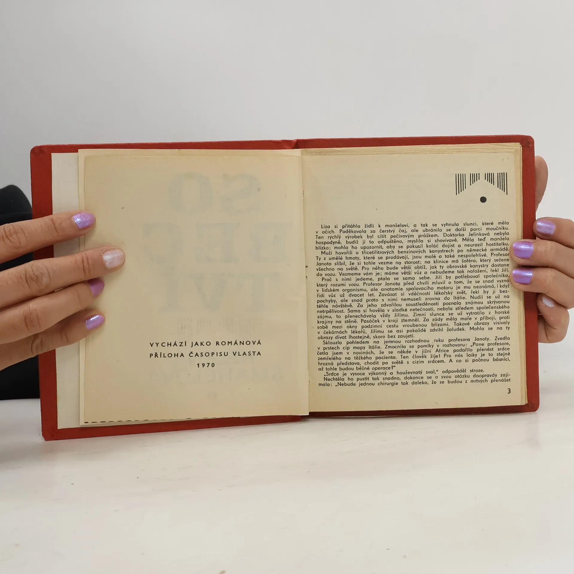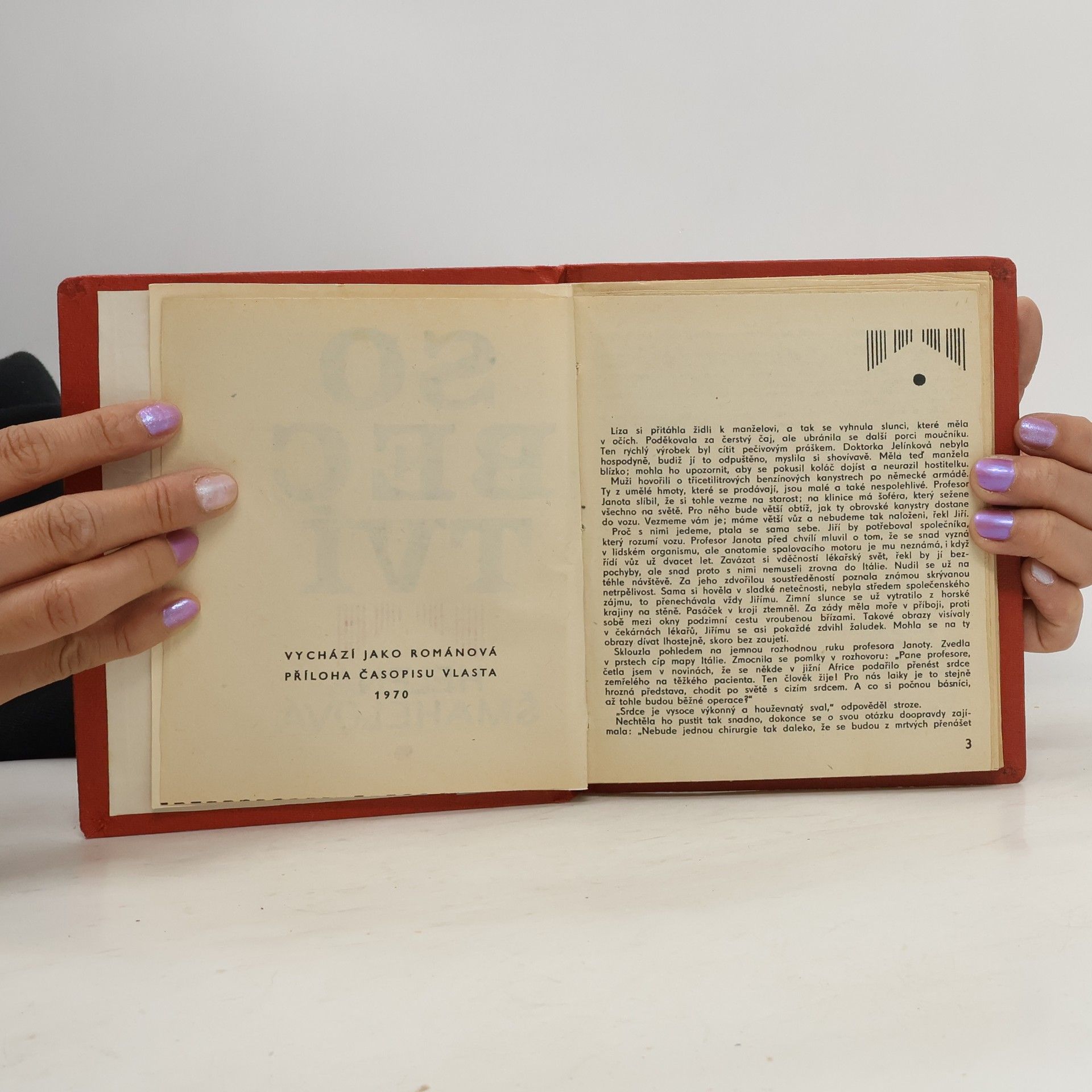 V novele vylíčila autorka prostřednictvím moderní úsporné psychologické kresby vztah stárnoucího muže a mladé medičky. Dva odlišné charaktery, úspěšný hudební skladatel, povrchní, jdoucí za kariérou a zásadová studentka medicíny odlišně chápou a řeší citové vzplanutí, které je sblížilo. Přímočarost děvčete marně bojuje se sobectvím partnera, který se nehodlá rozejít ani s ní, ani s manželkou. 3. vydání.
