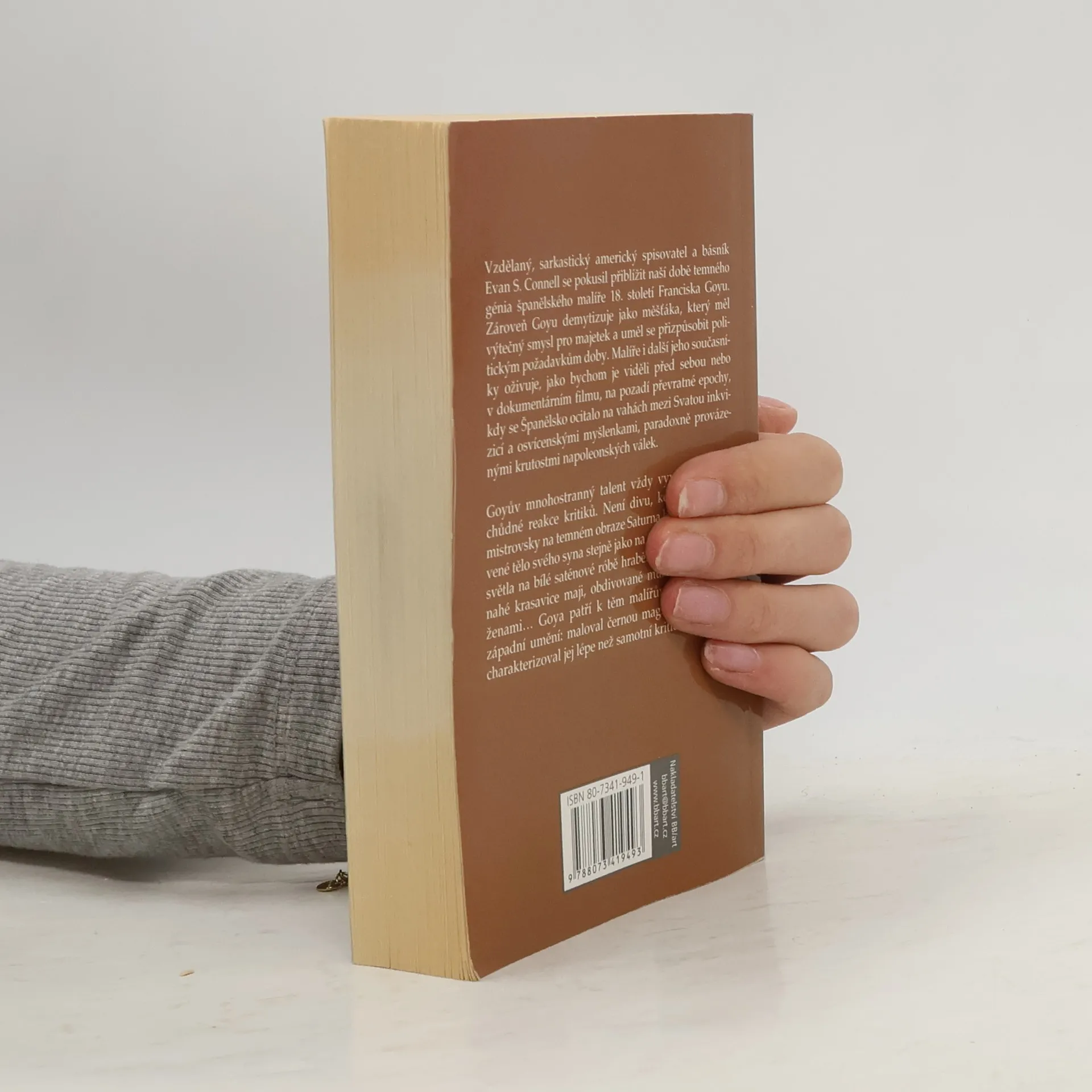 Goyův mnohostranný talent vyvolává u kritiků protichůdné reakce. Byl mistrem, jehož obraz Saturna, hltajícího zkrvavené tělo svého syna, je stejně nezapomenutelný jako jedinečné ztvárnění jemného světla v bílé saténové róbě hraběnky. Většina kritiků se shoduje, že Goya jednou provždy změnil západní umění, přičemž jeho vliv je různě interpretován. Degas si například posteskl, že Goyovou vinou je odsouzen k malování hospodyně ve vaně. Tento nevyzpytatelný umělec je pro autora skvěle zvoleným námětem. S proslulým vtipem, sarkastickou erudicí a podnětným bádáním oživuje dvorního malíře a jeho krutou dobu: Španělsko ve spárech inkvizice. Connell uvádí spoustu podrobností a komických rysů silně výstředních postav – vévodů, vévodkyň, královské rodiny, politiků a umělců – tvořících necudnou a nenapravitelnou sebranku hříšníků. Při mapování Goyovy kariéry zkoumá názory ostatních v průběhu dvou století – od šoku Paula Claudela po Baudelairův postřeh, že maloval černou magii naší civilizace. Connell vyčaroval Goyu, jeho umění a jeho dobu s krajní originalitou a bohatou obrazotvorností. Tato kniha je nezapomenutelným dílem mistrného vypravěče.