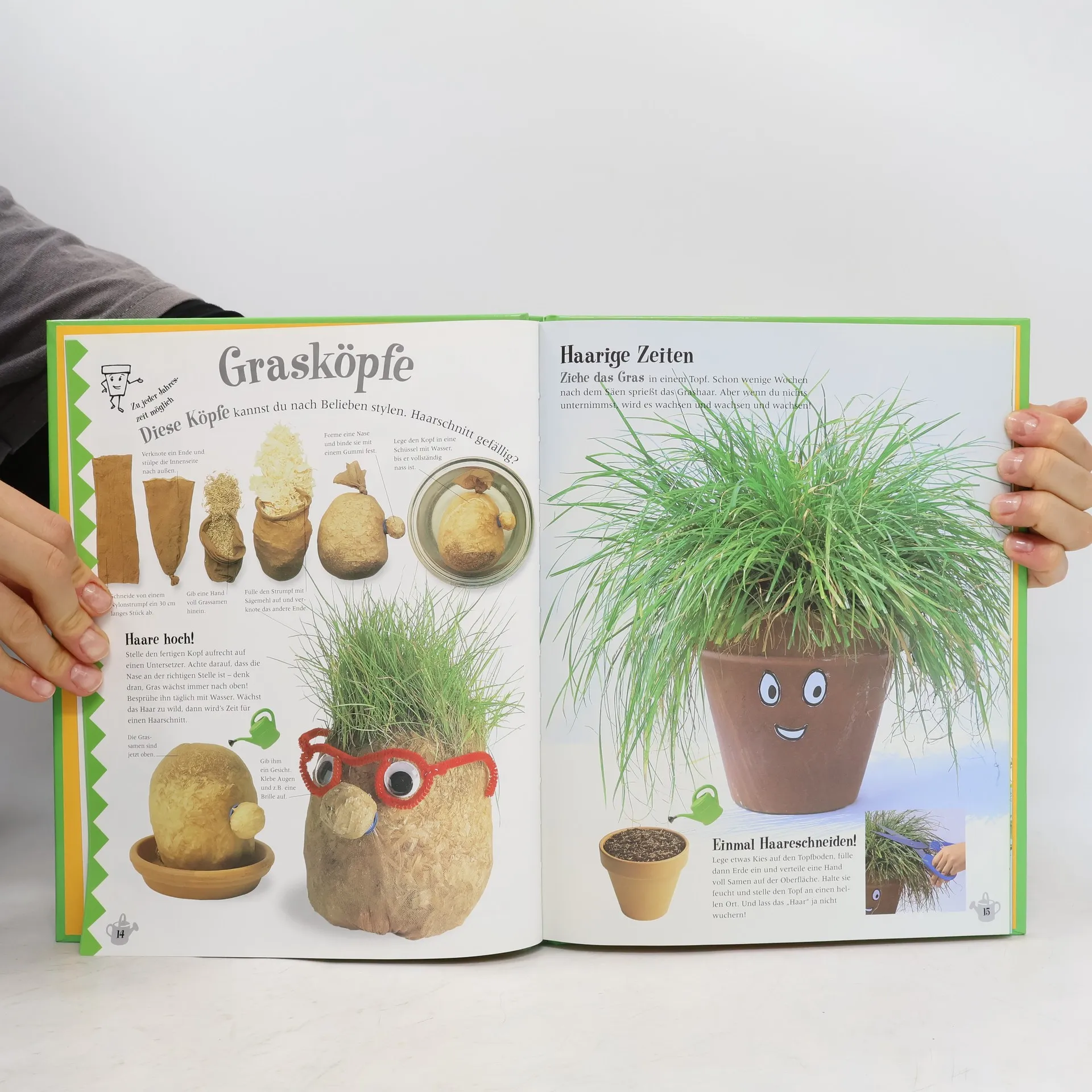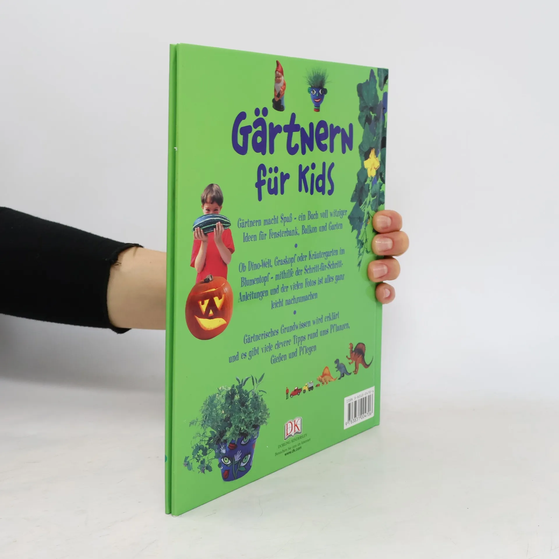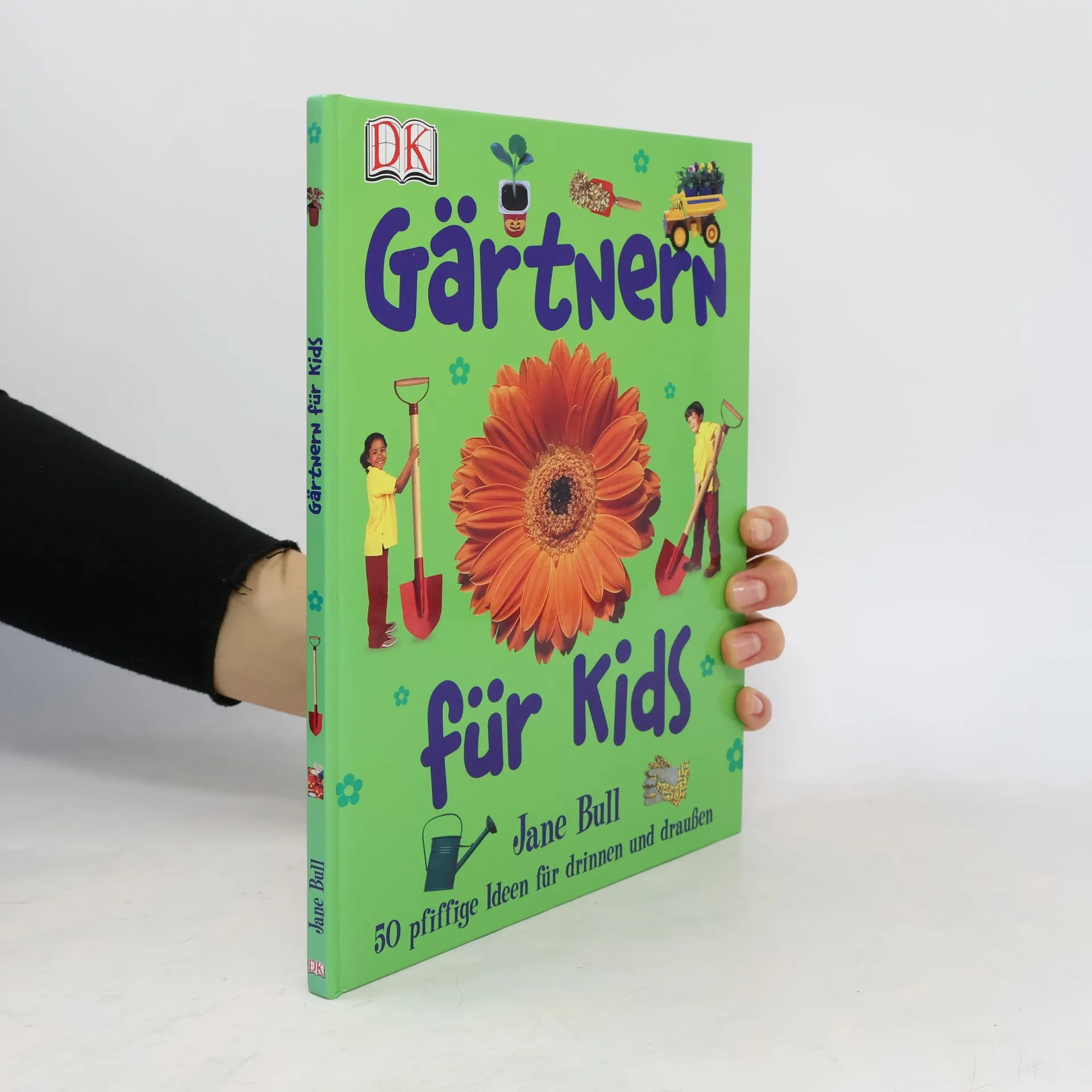 Gärtnern macht Spaß – und man braucht dafür nicht einmal einen großen Garten! Jane Bull zeigt Kindern in diesem Buch, wie sie mit einfachsten Mitteln und viel Phantasie auf der Fensterbank, dem Balkon oder im Freien Blumen, Gemüse und lustige Pflanzenarrangements ziehen und gestalten können. Die Autorin hat sich wieder jede Menge ausgedacht und stellt uns ihre Ideen vor: den Kräutergarten im Blumentopf, den Miniaturgarten, der in eine Handfläche passt, lustige Grasköpfe, bunt bemalte Blumentöpfe als Geschenkverpackung und vieles mehr. Hier können Kinder spielerisch und mit viel Spaß Grundbegriffe des Gärtnerns lernen, vom Säen bis zur Ernte der Tomaten, Kürbisse oder Zucchini. Bevor’s losgeht, erfährt der junge Gärtnerlehrling alles über den richtigen Boden, die verschiedenen Pflanzmethoden, die passenden Gefäße und die nötige Pflege der kleinen Pflanzen. Und zum Schluss gibt’s jede Menge praktischer Tipps, z. B. zum Thema Umpflanzen oder Düngen, sodass der Weg zum grünen Daumen gesichert ist!