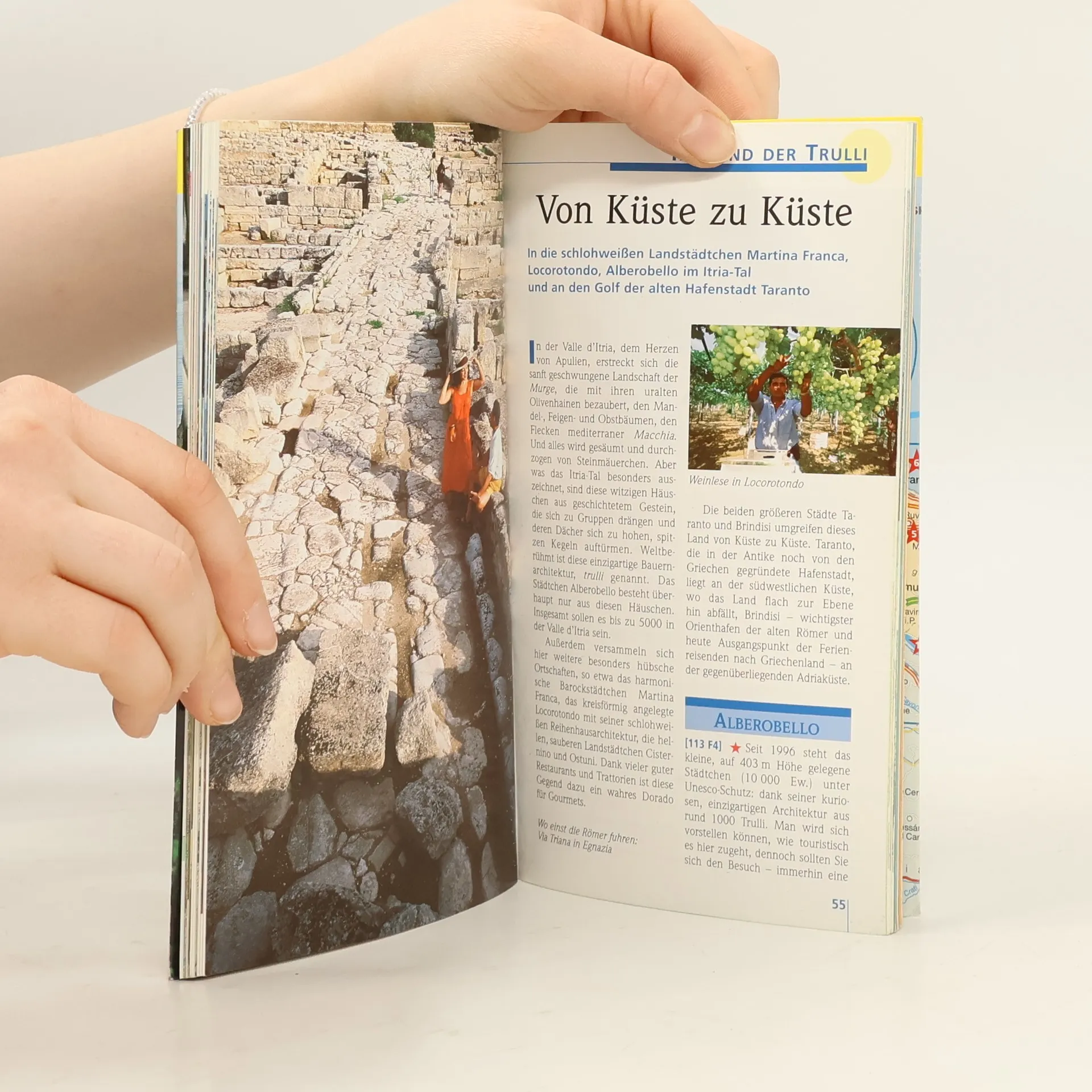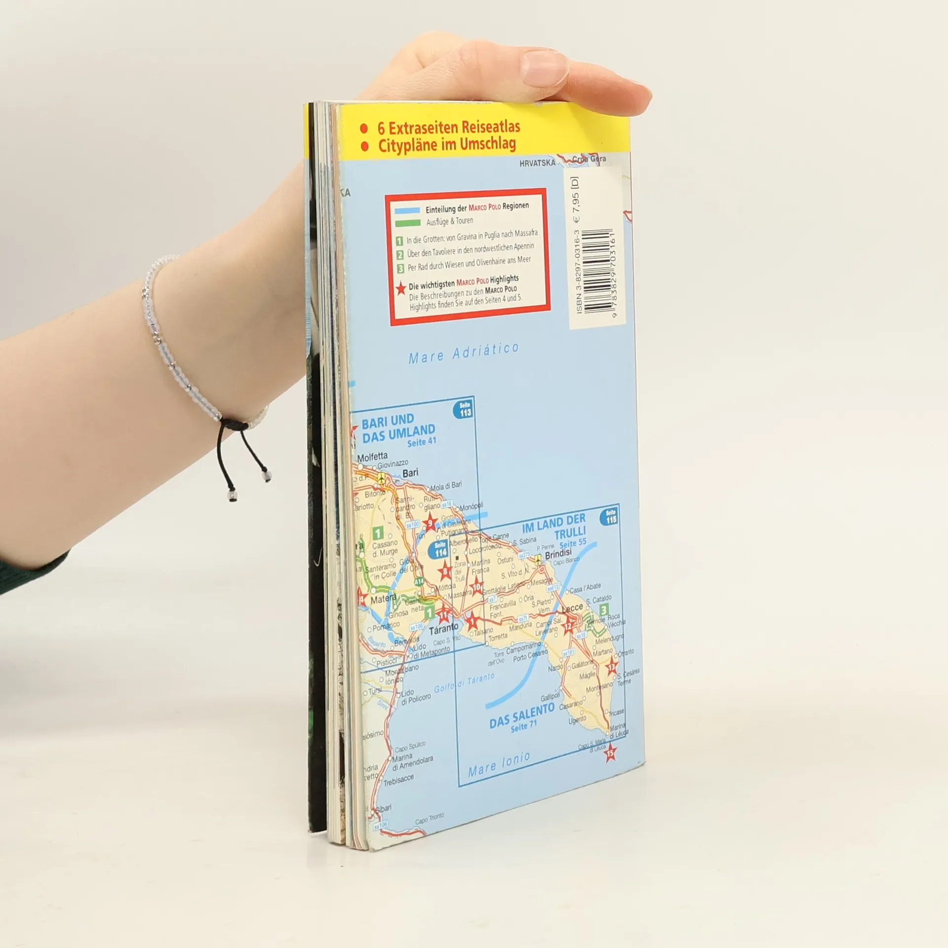 Apulien eine Welt der Kontraste, über der sechs Monate im Jahr die heiße, mediterrane Sonne scheint, während sich im karstigen Erdinnern eine geheimnisvolle Unterwelt aus Meeresgrotten, Tropfsteinbalyrinthen und Höhlenkirchen verbirgt. Steinerne Einsamkeit löst sich ab mit üppigen Gartenlandschaften, orientalische anmutenden Städtchen, grandiosen mittelalterlichen Kastellen und Kirchen, glasklarem Meer an bewegter Klippenküste oder feinen Sandstränden. Und über allem vibriert der Sound Apuliens, der beschwörende Rhythmus des Tamburello zum Tanz der Pizzica. Mit Szene-Guide, 24h Action pur, Insider-Tipps