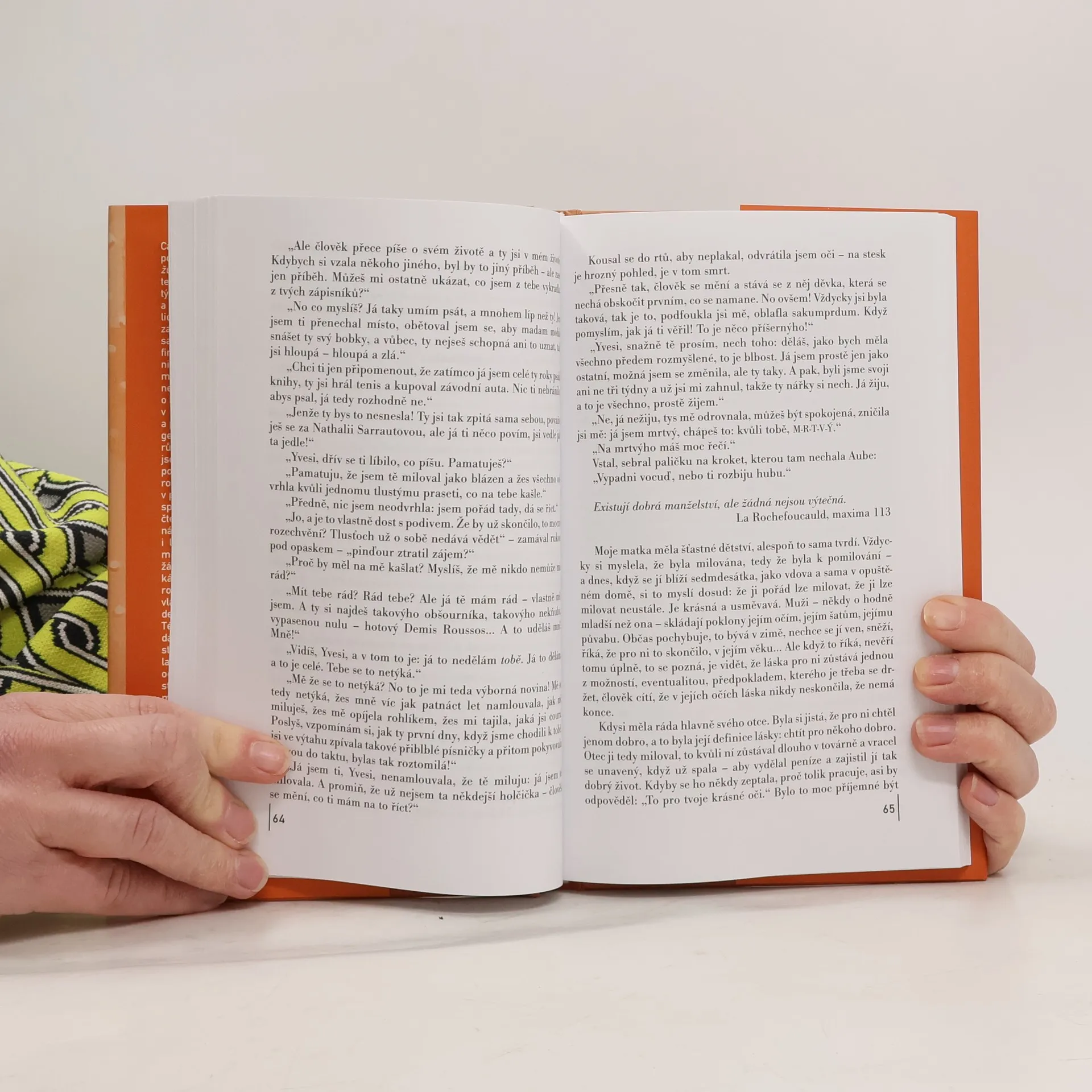 Text francouzské autorky s prvky románu, novely i eseje je: „kniha, která zpívá a přemýšlí o jediném, o lásce.“ Autorčiným stálým tématem, při němž střídá styly i žánry, je i v této, už deváté, knize láska. Vyprávění, v němž popisuje historii lásek i údělů žen svého rodu počínaje prababičkou a konče jejím vlastním manželstvím i mimomanželským vztahem, má výrazně autobiografickou podobu. Příběhy žen jsou proloženy úvahami o úskalích mezilidských vztahů, postřehy o roli a postavení ženy, i otevřeným líčením milostných prožitků. Autorka se snaží o rozbor různých podob a tváří lásky, ale kromě toho si dokáže i okouzleně pohrávat s jazykem a této své knihy si cení nejvíce ze své dosavadní tvorby. Doprovozeno četnými výroky slavných, zejména maxim vévody de la Rochefoucauld.