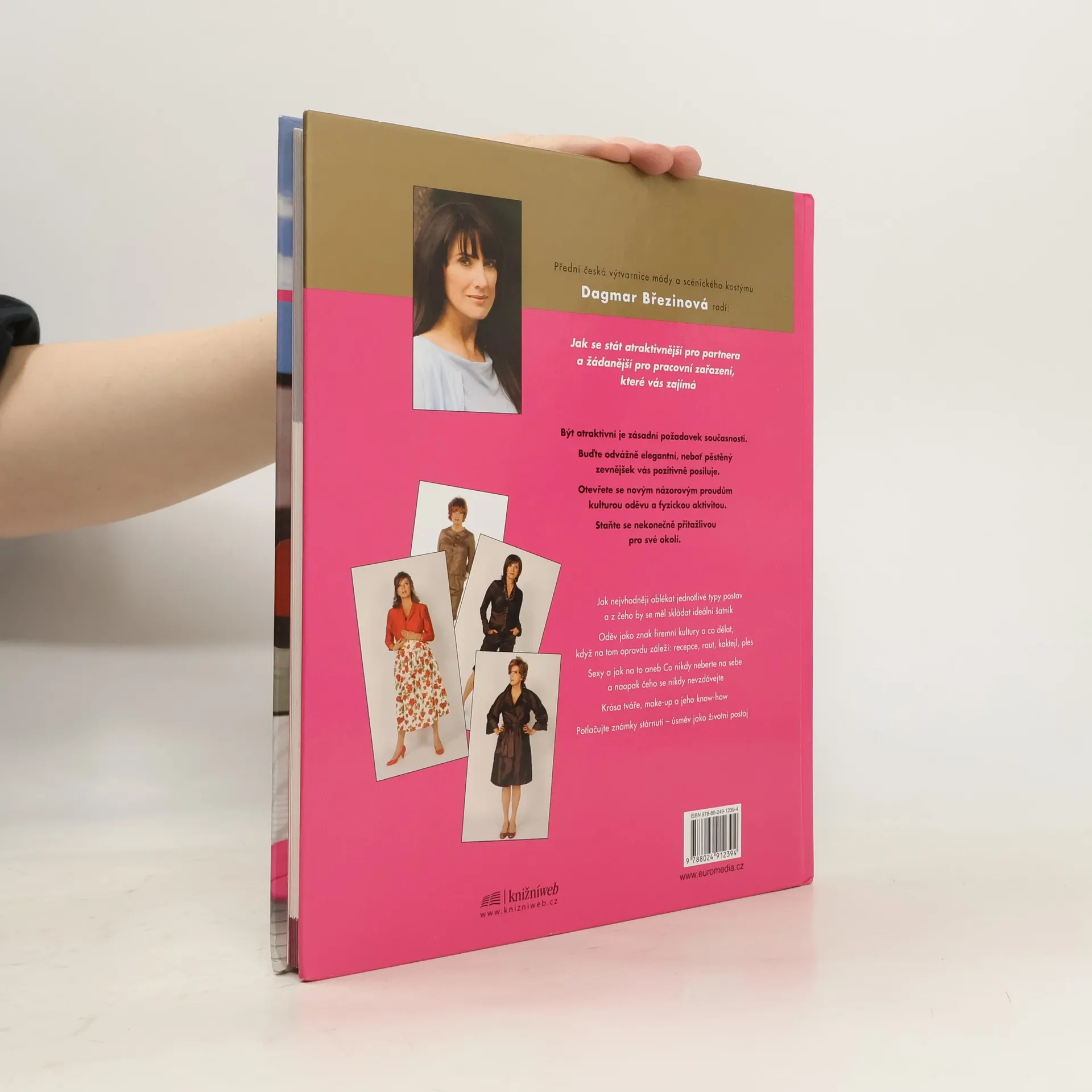 Přední česká výtvarnice módy a scénického kostýmu Dagmar Březinová radí: Jak se stát atraktivnější pro partnera a žádanější pro pracovní zařazení, které vás zajímá. Být atraktivní je zásadní požadavek současnosti. Buďte odvážně elegantní, neboť pěstěný zevnějšek vás pozitivně posiluje. Otevřete se novým názorovým proudům kulturou oděvu a fyzickou aktivitou. Staňte se nekonečně přitažlivou pro své okolí. • Jak nejvhodněji oblékat jednotlivé typy postav a z čeho by se měl skládat ideální šatník • Oděv jako znak firemní kultury a co dělat, když na tom opravdu záleží: recepce, raut, koktejl, ples • Sexy a jak na to aneb Co nikdy neberte na sebe a naopak čeho se nikdy nevzdávejte • Krása tváře, make-up a jeho know-how • Potlačujte známky stárnutí – úsměv jako životní postoj