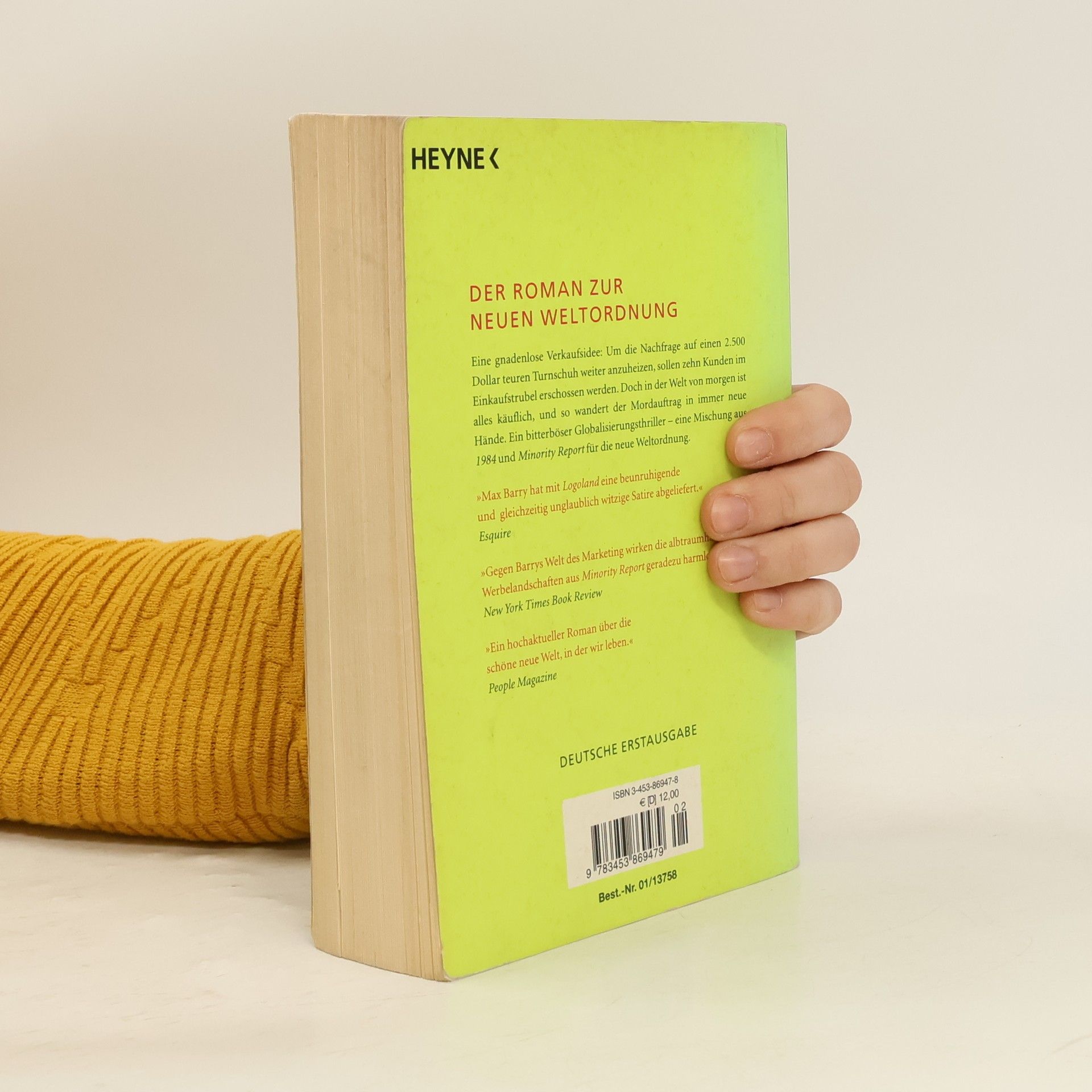 Eine gnadenlose Verkaufsidee: Um die Nachfrage auf einen 2500 Dollar teuren Turnschuh weiter anzuheizen, sollen zehn Kunden im Einkaufstrubel erschossen werden. Doch in der Welt von morgen ist alles käuflich, und so wandert der Mordauftrag in immer neue Hände. Ein bitterböser Globalisierungsthriller - eine Mischung aus „Fight Club“ und „Minority Report“ für die neue Weltordnung. Basierend auf dem Roman „Jennifer Government“ (dt: „Logoland“) gibt es jetzt im Internet ein kostenloses Computerspiel. Unter www. nationstates. net kann man sich hier seine eigene Zukunftswelt zurechtzimmern.