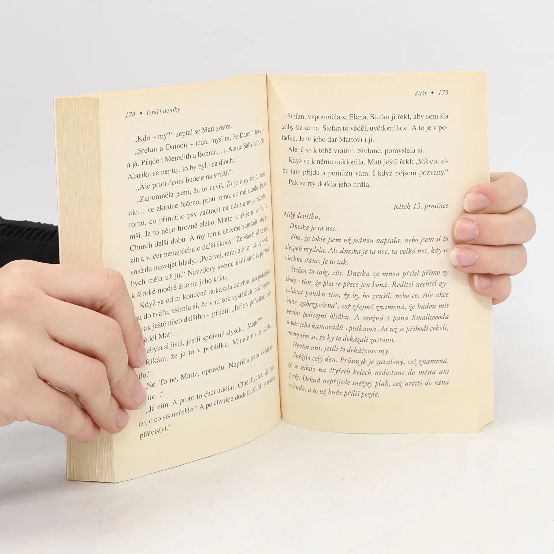 "...Děsivá síla plná zášti napadla naše město. Touží všechny zahubit a pít jejich krev. Dokáží se Damon se Stefanem smířit a bojovat bok po boku proti něčemu ještě hrozivějšímu, než jsou oni sami? A dokážu to já?"