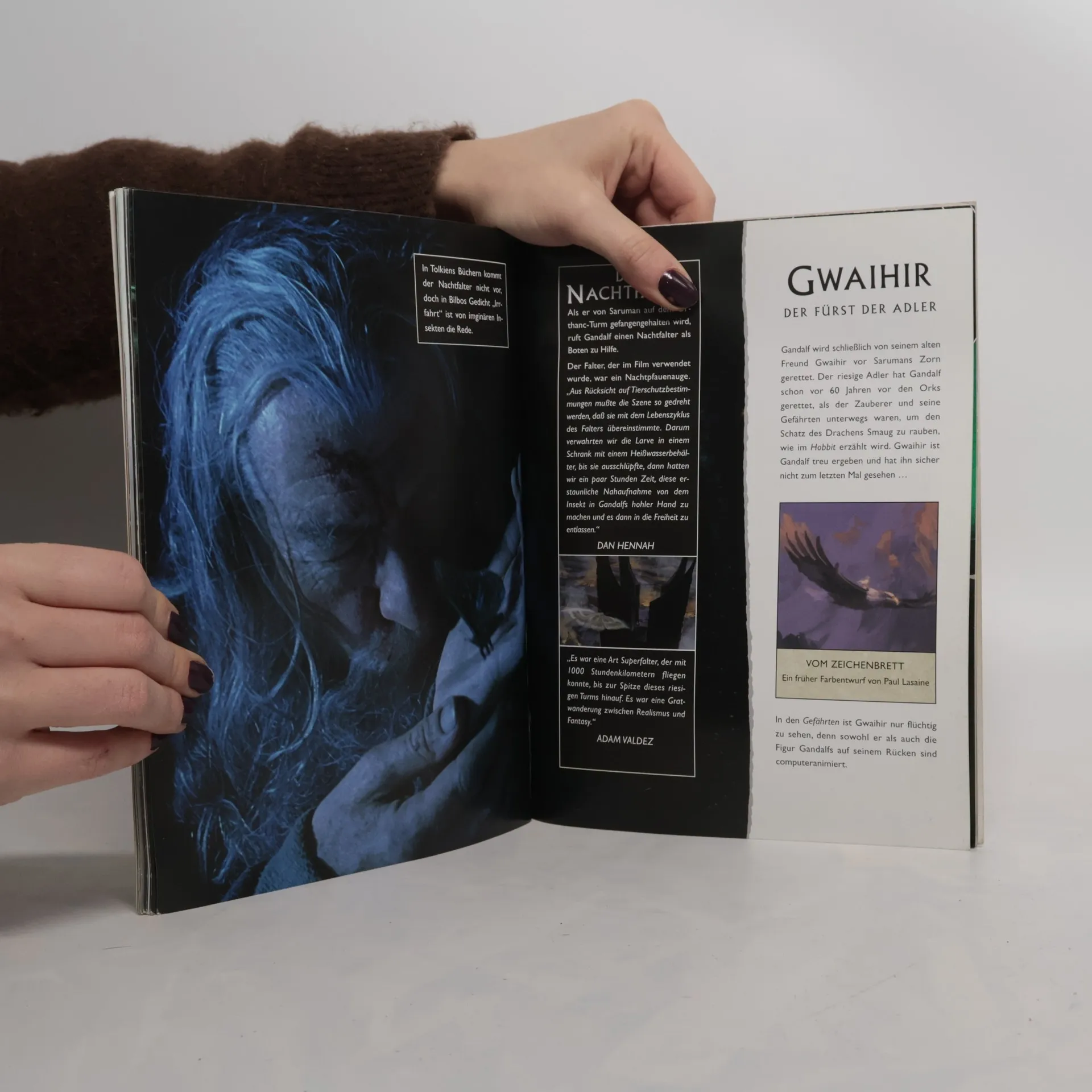 Ebenso enthalten sind Fotos und Großaufnahmen anderer Rassen, die eine Rolle in den Zwei Türmen spielen, einschließlich der Rohirrim, der baumähnlichen Ents, der wölfischen Warge und der fliegenden Tiere. Zu diesem außergewöhnlichen Fotomaterial kommen noch interessante Informationen darüber, wie die Kreaturen entworfen und zum Leben erweckt wurden.