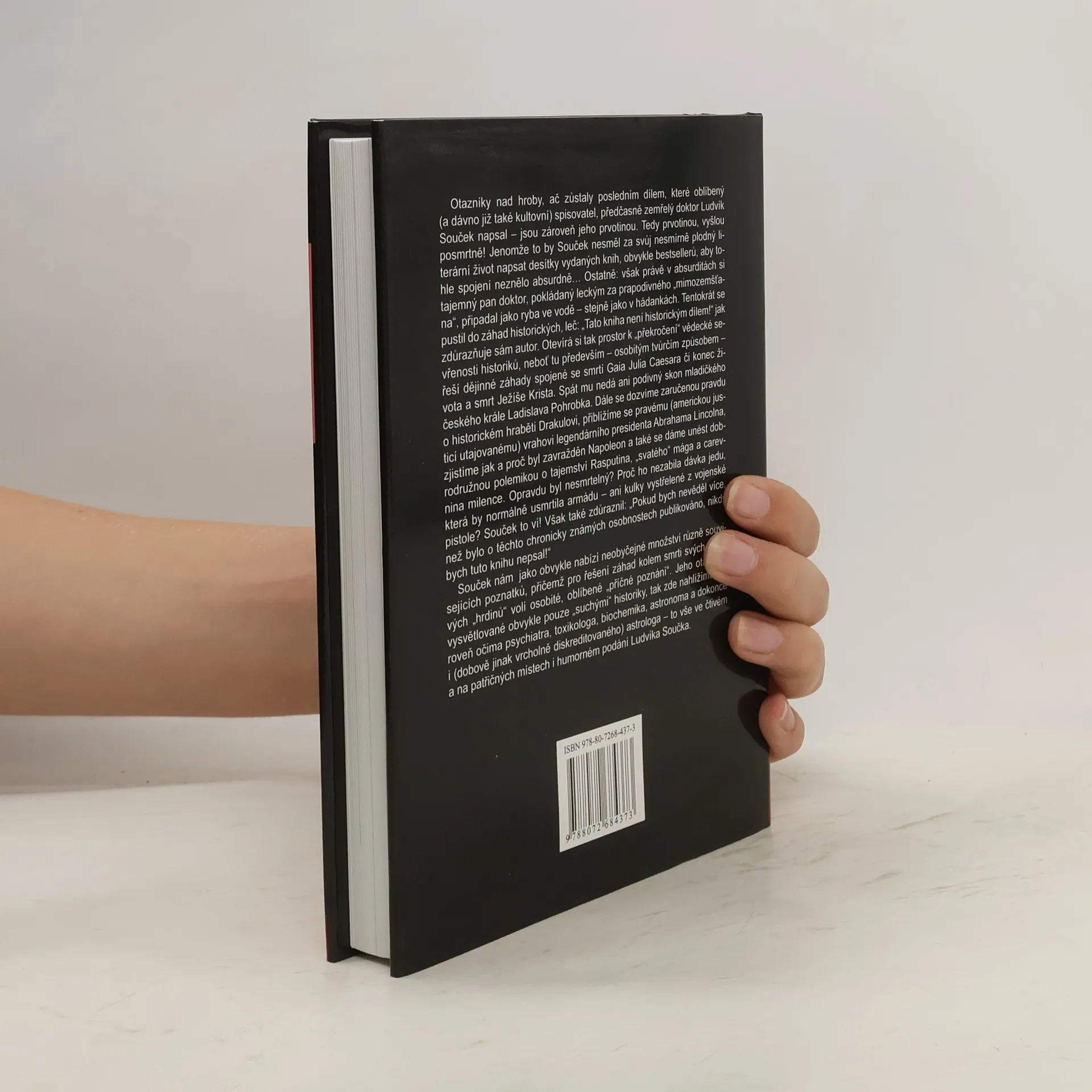 Otazníky nad hroby, poslední a zároveň posmrtně vydaná prvotina oblíbeného spisovatele doktora Ludvíka Součka, se zaměřuje na historické záhady. Autor, známý svým zájmem o absurditu a hádanky, se odvážně pouští do témat jako smrt Gaia Julia Caesara, Ježíše Krista a podivný konec českého krále Ladislava Pohrobka. Souček zdůrazňuje, že jeho dílo není historickým textem, což mu umožňuje překročit vědecké hranice a přistoupit k dějinám osobitým tvůrčím způsobem. Čtenáři se dozvědí pravdu o historickém hraběti Drakulovi, o vrahovi Abrahama Lincolna, a o okolnostech Napoleonovy smrti. Také se ponoří do dobrodružné polemiky o tajemství Rasputina, jehož údajná nesmrtelnost vyvolává otázky o účinnosti jedu a kulky. Souček, jakožto psychiatr, toxikolog a biochemik, nabízí unikátní pohled na historické postavy a jejich osudy, čímž obohacuje tradiční historické narativy. Jeho styl je čtivý a místy humorný, což činí z této knihy fascinující a podnětné čtení, plné různorodých znalostí a nečekaných spojení.