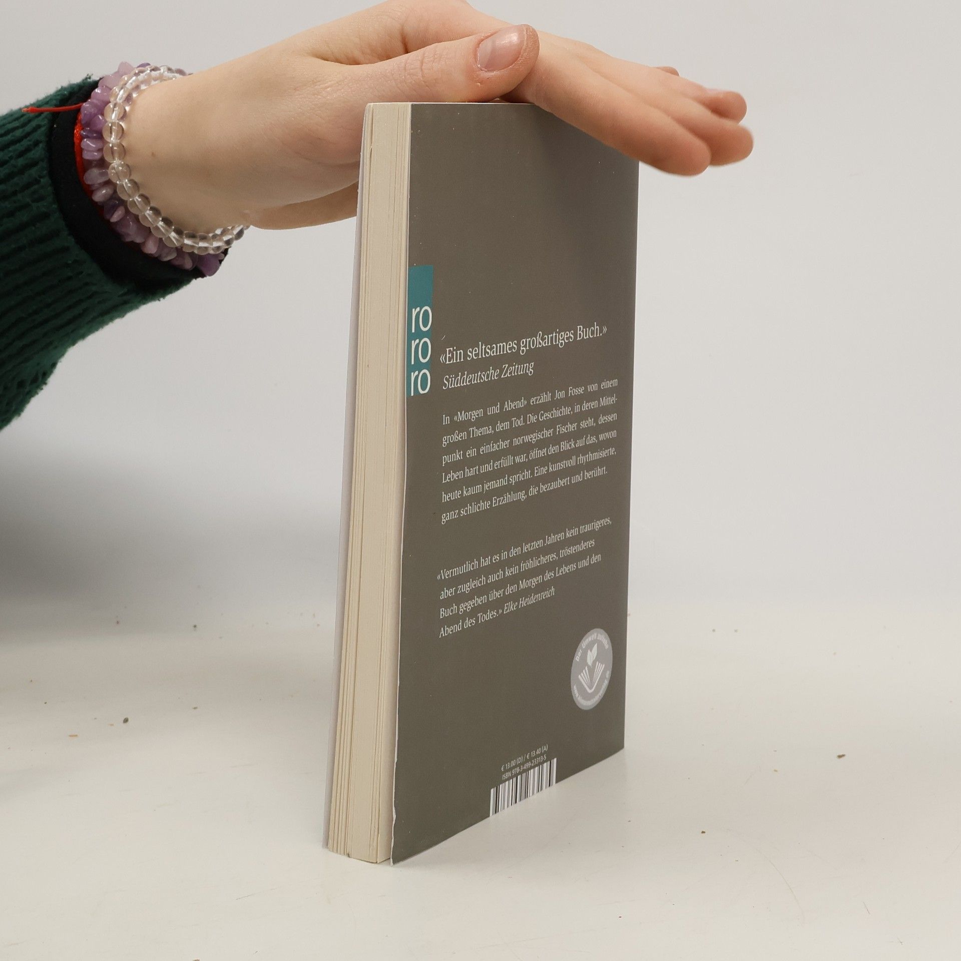 In «Morgen und Abend» erzählt Jon Fosse von einem großen Thema, dem Tod. Die Geschichte, in deren Mittelpunkt ein einfacher norwegischer Fischer steht, dessen Leben hart und erfüllt war, öffnet den Blick auf das, wovon heute kaum noch jemand spricht. Eine kunstvoll rhythmisierte, ganz schlichte Erzählung, die bezaubert und berührt. «Vermutlich hat es in den letzten Jahren kein traurigeres, aber zugleich auch kein fröhlicheres, tröstenderes Buch gegeben über den Morgen des Lebens und den Abend des Todes.» (Elke Heidenreich)