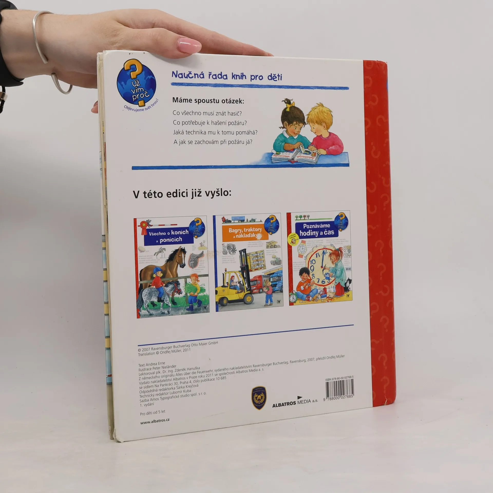 Co všechno musí znát hasič? Co potřebuje k hašení požáru? Co se děje na požární stanici a kde všude ještě hasiči pomáhají? A jak se zachovám při požáru já? Chytrá knížka pro malé děti. Dítě se nejen dozví odpovědi na řadu otázek, ale také získá návod, jak se chovat v nebezpečné situaci. Knížka vychází s velkým plakátem s nejdůležitějšími požárními vozidly. Je to čtení nejen pro kluky!
