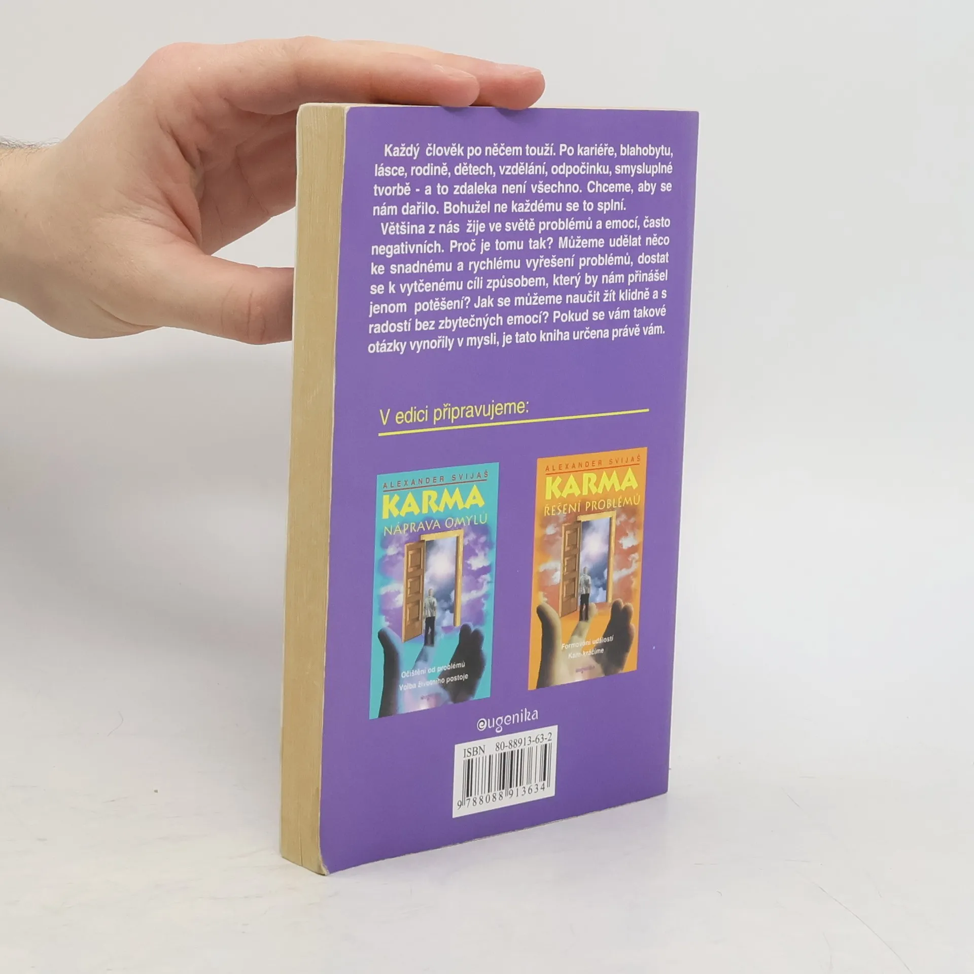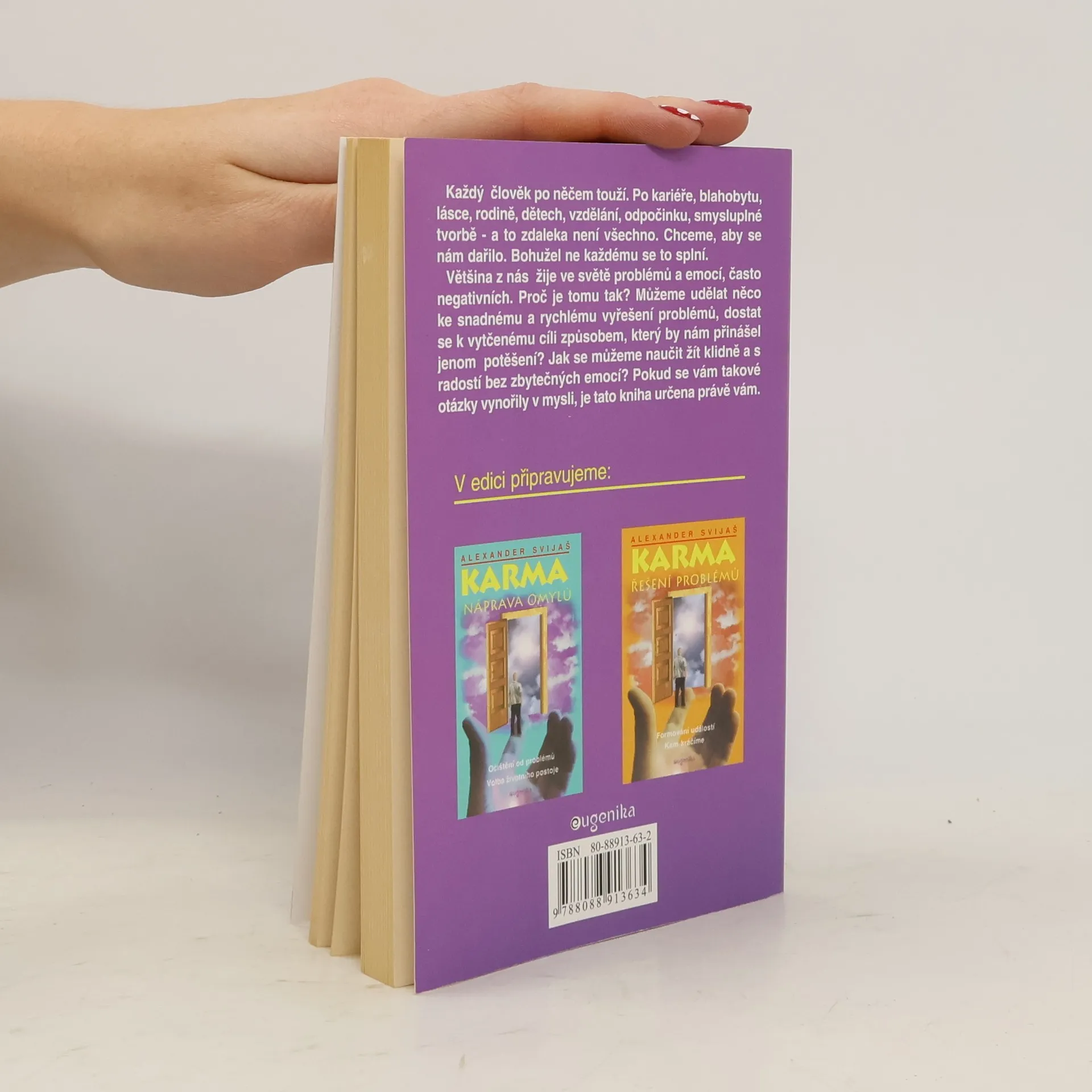 Karmické působení v každodenním životě Zdraví a karma Každý člověk po něčem touží. Po kariéře, blahobytu, lásce, rodině, dětech, vzdělání, odpočinku, smysluplné tvorbě - a to zdaleka není všechno. Chceme, aby se nám dařilo. Bohužel ne každému se to splní. Většina z nás žije ve světě problémů a emocí, často negativních. Proč je tomu tak? Můžeme udělat něco ke snadnému a rychlému vyřešení problémů, dostat se k vytčenému cíli způsobem, který by nám přinášel jenom potěšení? Jak se můžeme naučit žít klidně a s radostí bez zbytečných emocí? Pokud se vám takové otázky vynořily v mysli, je tato kniha určena právě vám. První vydání... celý text