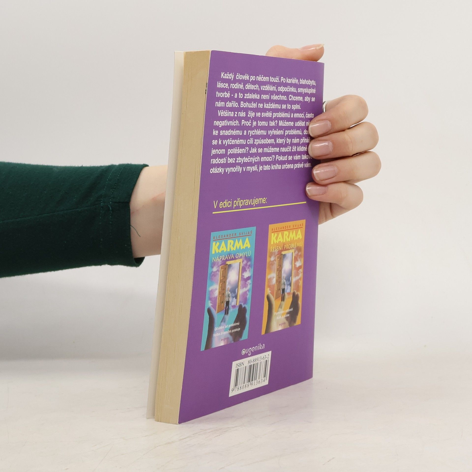 Karmické působení v každodenním životě Zdraví a karma Každý člověk po něčem touží. Po kariéře, blahobytu, lásce, rodině, dětech, vzdělání, odpočinku, smysluplné tvorbě - a to zdaleka není všechno. Chceme, aby se nám dařilo. Bohužel ne každému se to splní. Většina z nás žije ve světě problémů a emocí, často negativních. Proč je tomu tak? Můžeme udělat něco ke snadnému a rychlému vyřešení problémů, dostat se k vytčenému cíli způsobem, který by nám přinášel jenom potěšení? Jak se můžeme naučit žít klidně a s radostí bez zbytečných emocí? Pokud se vám takové otázky vynořily v mysli, je tato kniha určena právě vám. První vydání... celý text