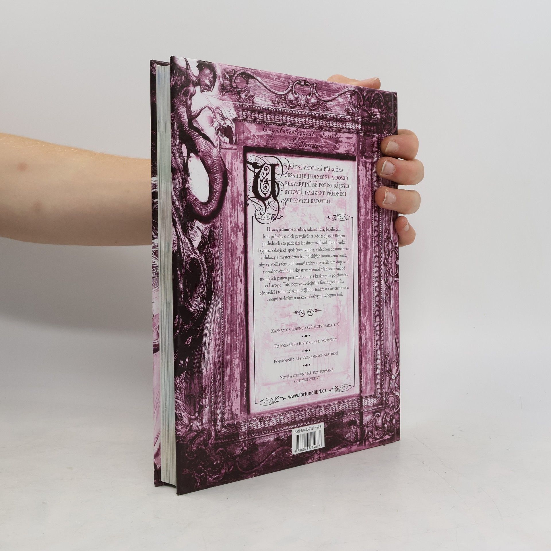 Unikátní vědecká příručka obsahuje jedinečné a dosud nezvěřejněné popisy bájných bytostí, pořízené předními světovými badateli. Draci, jednorožci, obři, salamandři, bazilišci... Jsou příběhy o nich pravdivé? A kde teď jsou? Během posledních sto padesáti let shromažďovala Londýnská kryptozoologická společnost zprávy, vědeckou dokumentaci a důkazy z mysteriózních a odlehlých koutů zeměkoule, aby vytvořila tento ohromný archiv a vyřešila tím doposud nezodpovězené otázky stran všemožných stvoření: od mořských panen přes minotaury a krakeny až po chiméry či harpyje. Tato poprvé zveřejněná fascinující kniha přesvědčí i toho nejskeptičtějšího čtenáře o existenci tvorů s neuvěřitelnými a někdy i děsivými schopnostmi.
