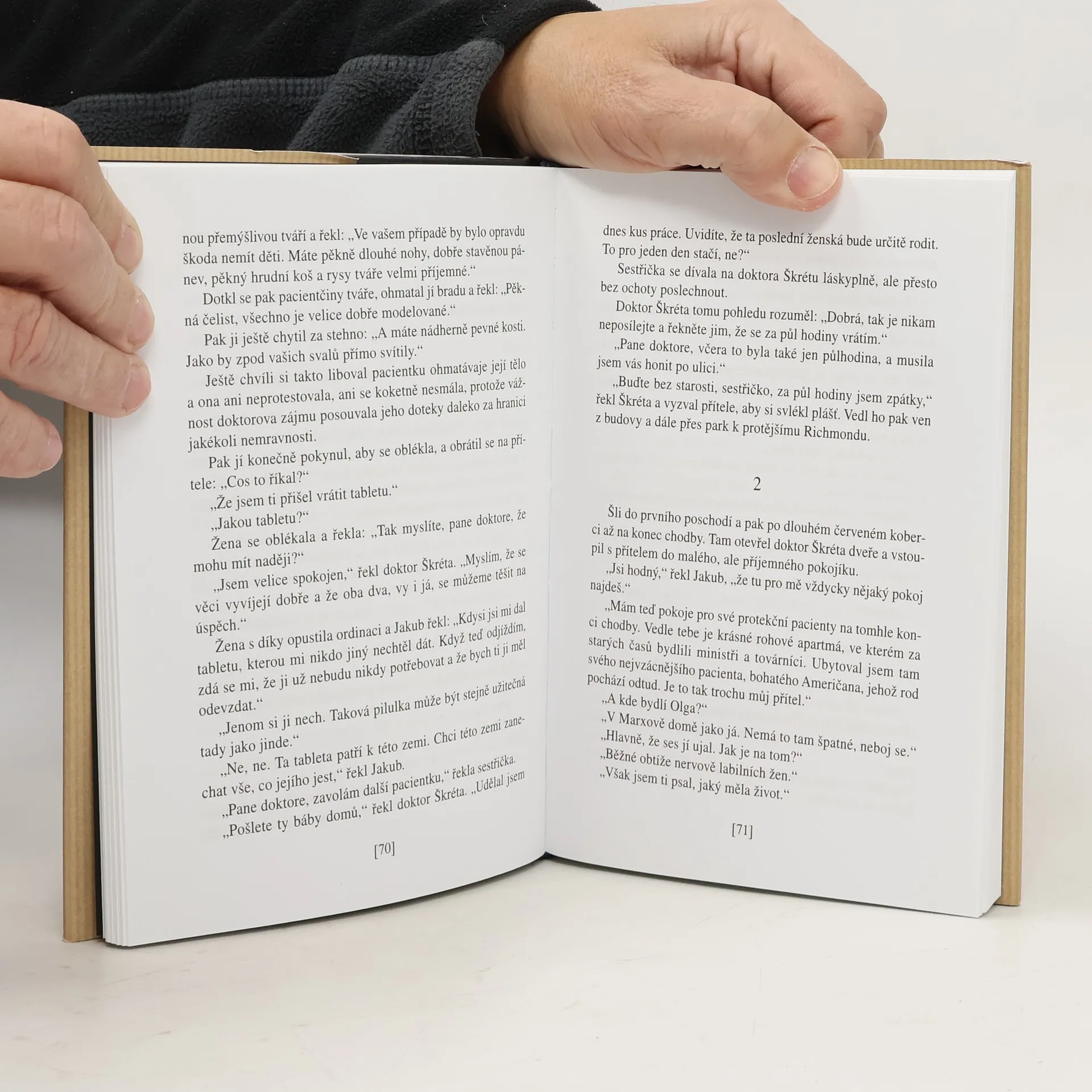 Do této černé románové frašky svedl autor několik postav: těhotnou svobodnou zdravotní sestru, jejího ženatého milence muzikanta, jeho krásnou a žárlivou ženu, honbu na zatoulané psy, výjev před potratovou komisí, mladou Američanku toužící po dítěti a jejího manžela stiženého strachem ze smrti, dále českého gynekologa, který domněle neplodné pacientky v lázních léčí injektováním svého vlastního semene, zakládá tím sbratření lidstva a za službu prokázanou zmíněným Američanům požádá, aby ho adoptovali a umožnili mu tím výjezd za hranice, a konečně někdejšího politického vězně, z něhož se těsně před legální emigrací stane vrah.