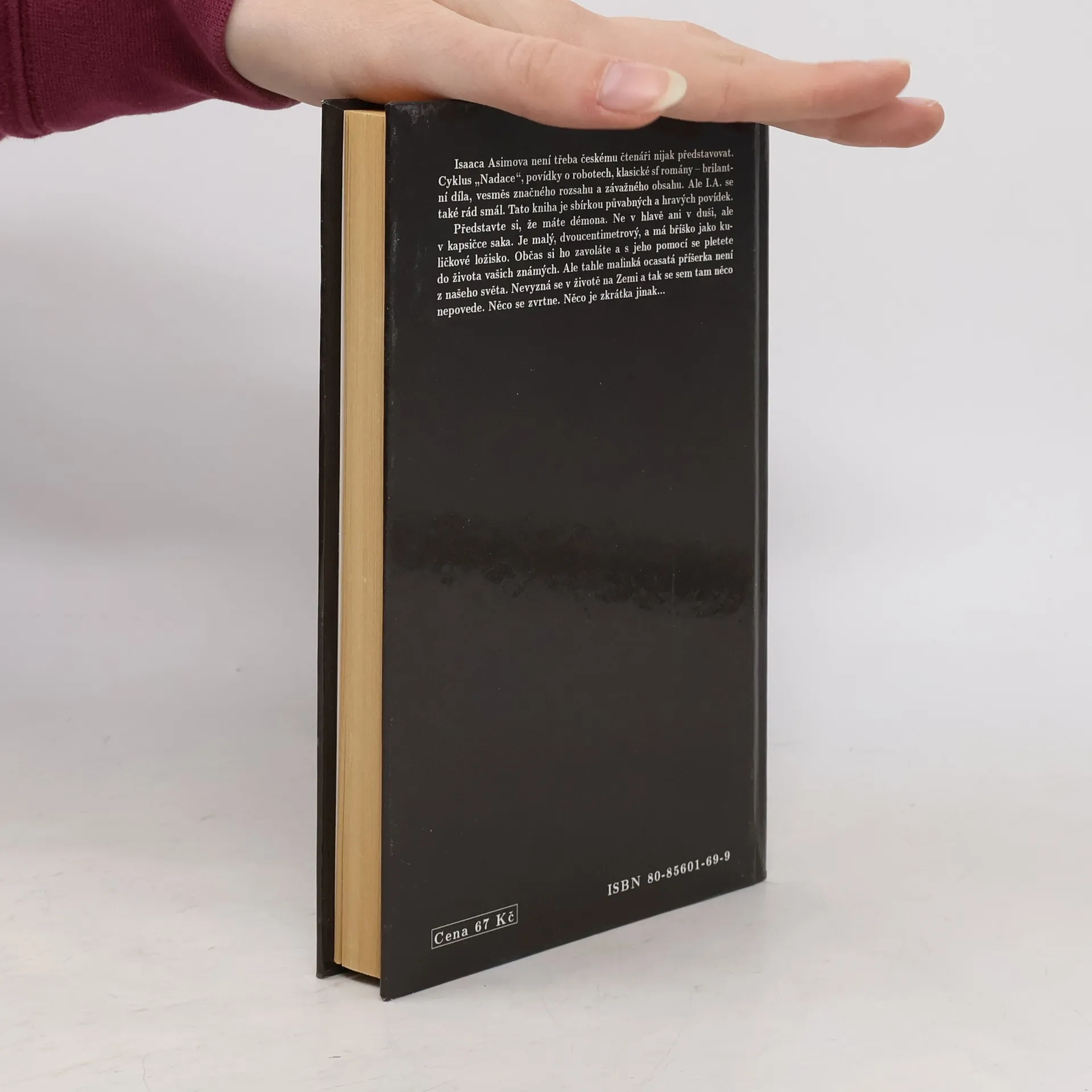 Isaaca Asimova není třeba českému čtenáři nijak představovat. Cyklus Nadace, povídky o robotech, klasické sci-fi romány – brilantní díla, vesměs značného rozsahu a závažného obsahu. Ale I. Asimov se také rád smál. Tato kniha je sbírkou jeho půvabných a hravých povídek. Představte si, že máte démona. Ne v hlavě ani v duši, ale v kapsičce saka. Je malý, dvoucentimetrový, a má bříško jako kuličkové ložisko. Občas si ho zavoláte a s jeho pomocí se pletete do života vašich známých. Ale tahle malinká ocasatá příšerka není z našeho světa. Nevyzná se v životě na Zemi a tak se sem tam něco nepovede. Něco zvrtne. Něco je zkrátka jinak…