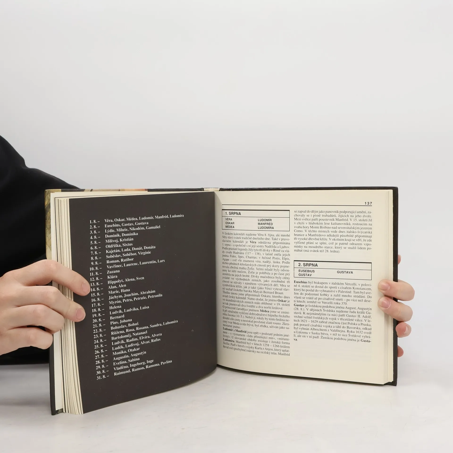 Kalendář slouží nejen k časovému určování nejrůznějších událostí v nezměnitelná posloupnosti dnů, měsíců a roků, ale všichni užíváme též jména, která do něj byla po staletí zapisována. Zvyk obsadit všechny dny kalendářního roku jmény se rozšířil v počátcích křesťanství a jmen je dnes podstatně více než dnů v roce. Po kom se tedy vlastně jmenujeme? Jaké jméno máme dát těm, kdo teprve přijdou? Jaké vlastnosti a schopnosti symbolizují jména, která zapisujeme právě narozeným do matriky? Na všechny tyto otázky odpovídá 1000 JMEN V KALENDÁŘI Anny Bauerové. V její knize se sešla opravdu výjimečná společnost — patří do ní bez rozdílu knížata a otroci, biskupové a žebráci, princezny, lupiči, prosté dívky, králové, nevěstky, filozofové, poustevníci, válečníci, umělci, císařové, mučedníci, učenci a mnoho dalších postav s nevšedními osudy. Po nich se dostala do kalendáře všechna jména, která dnes užíváme, neboť oni je proslavili. Původně však jména vyjadřovala určité (většinou kladné) vlastnosti a utvářela se dávno předtím, než lidé začali systematicky zaznamenávat své dějiny. Přehledně sestavená a kultivovaně napsaná kniha Anny Bauerové se proto dá číst i najednou jako tisíc příběhů z jednoho kalendáře. Vydání první... celý text