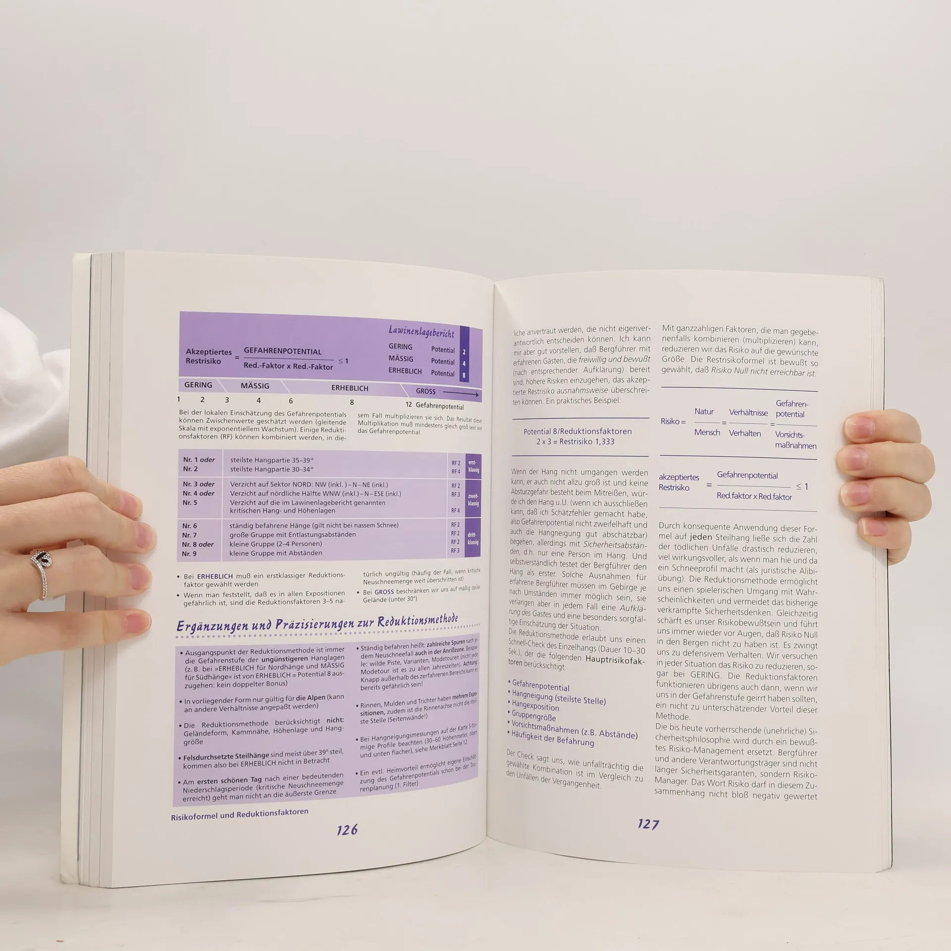 Das vorliegende Buch vermittelt mit der "Formel 3x3" und der "Reduktionsmethode" als Kernstück eine ausgezeichnete Methodik zur raschen und gezielten Entscheidungsfindung. Der Autor vergleicht eine Methode mit der Rasterfahndung bei der Polizei. Die Schnee- und Wetterverhältnisse, das Gelände und der Mensch werden dabei mit den drei geographischen Räumen Region, Tourengebiet und Einzelhang im Sinne eines immer feiner werdenden Filters verknüpft. Die Methodik besticht in ihrer Einfachheit und verhindert damit, dass insbesondere unter Zeitdruck wichtige Entscheidungselemente vergessen gehen.