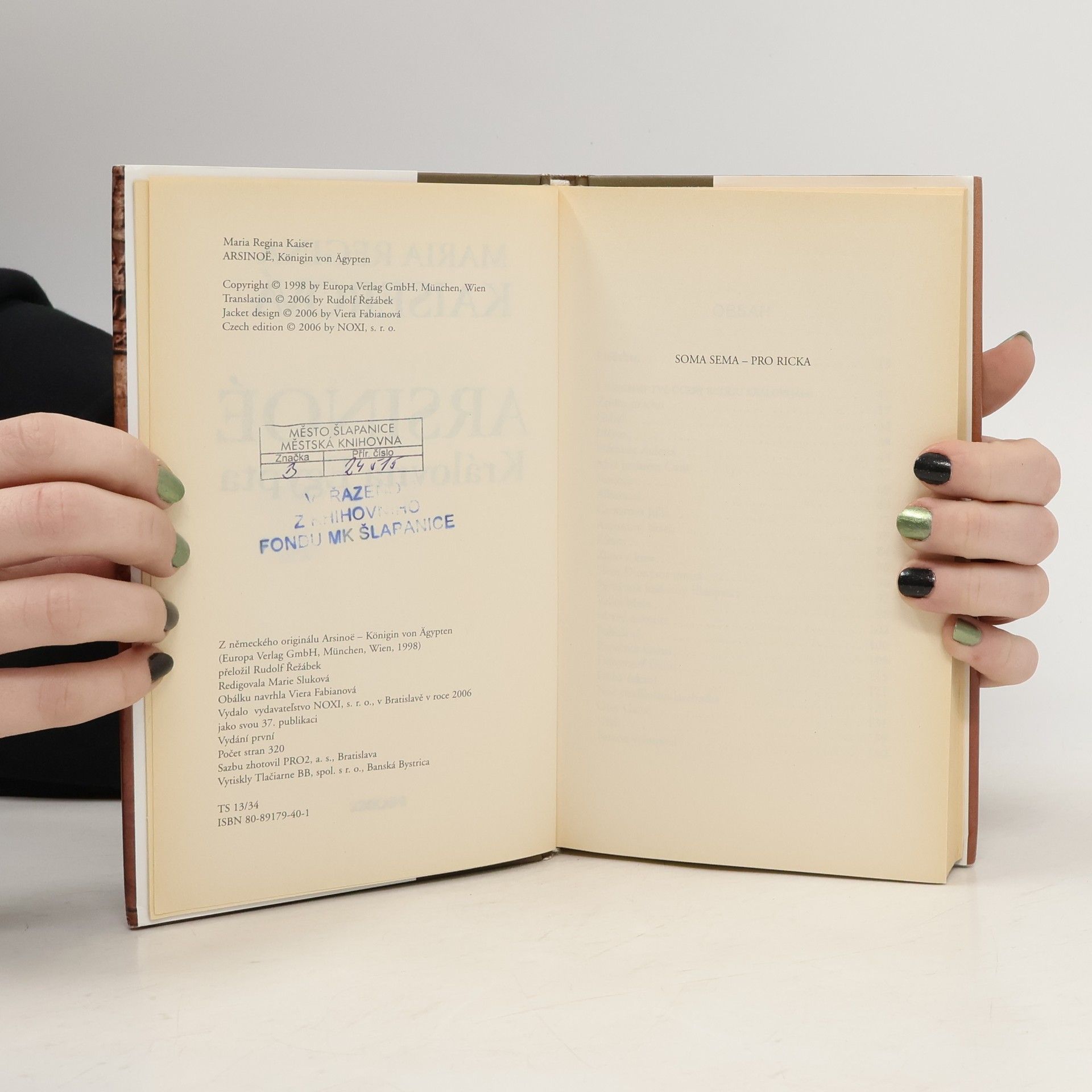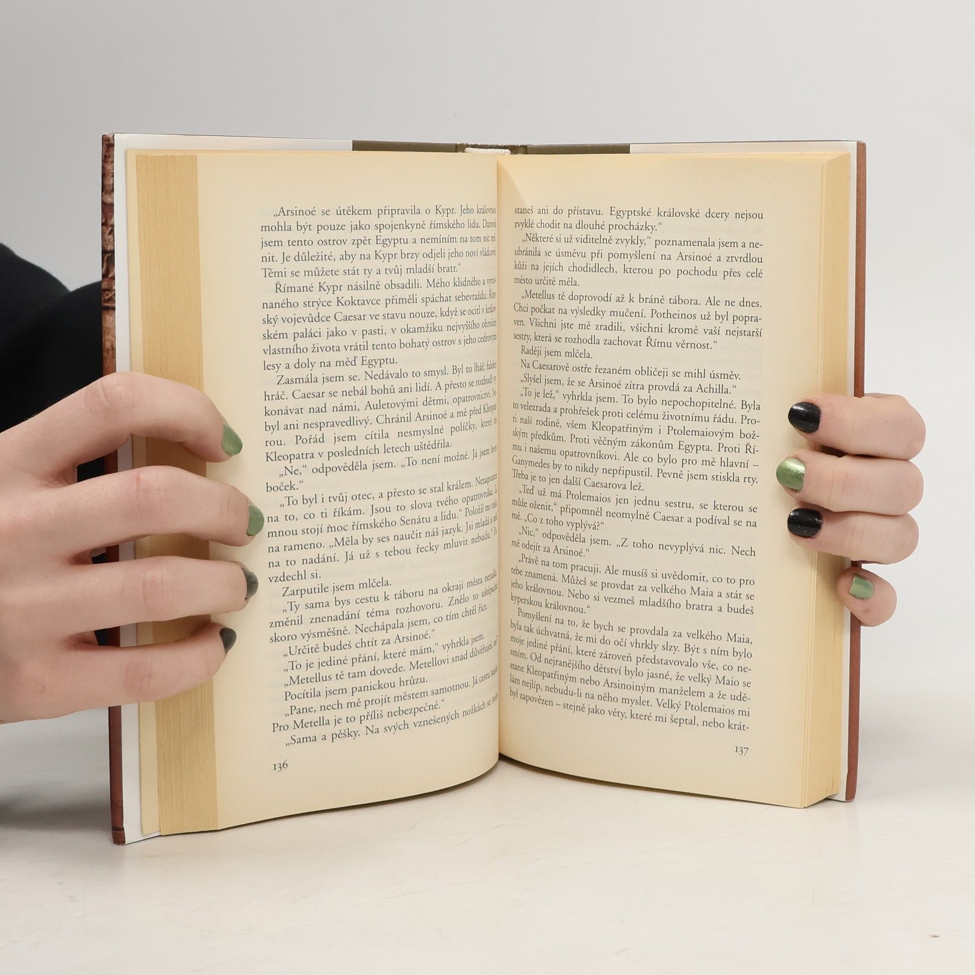 Arsinoé, Caesarova milenka, odpůrkyně Říma a Kleopatřina sestra. Vyrůstala v alexandrijském paláci, ve stínu starší sestry Kleopatry. Křehká zelenooká Arsinoé se jako čekatelka na trůn stala klíčovou postavou intrik a sňatkové diplomacie. Seznámila se s mužem, který byl úplně jiný než Římané a Heléni u královského dvora. S Achillem, vojevůdcem snědé pleti, vytvořila vizi naprosto odlišnou od Kleopatřiny politiky spojenectví s Římem. Za její vlády měla vzniknout africky orientovaná egyptská říše. Arsinoé vyzvala k povstání a nakrátko se zdálo, že svobodný Egypt není pouhá utopie. Potom však Achillovo vojsko utrpělo zdrcující porážku. Arsinoé byla jako poražená vedena v triumfálním průvodu Římem. Římané současně v palácích u Tiberu vzdávali hold její sestře Kleopatře, kterou dosadili na egyptský trůn. Byl to však sám Caesar, kdo držel nad Arsinoé ochrannou ruku. Když s ním otěhotněla, musela uprchnout před Kleopatřinou žárlivostí. Naděje na egyptský trůn se nikdy nevzdala, ale Kleopatra dokázala získat na svou stranu i dalšího silného muže Říma, Marka Antonia. To však ještě netušila, jak blízko se ocitla vlastnímu zániku, když Marka Antonia vyzvala, aby Arsinoé sprovodil ze světa.... celý text