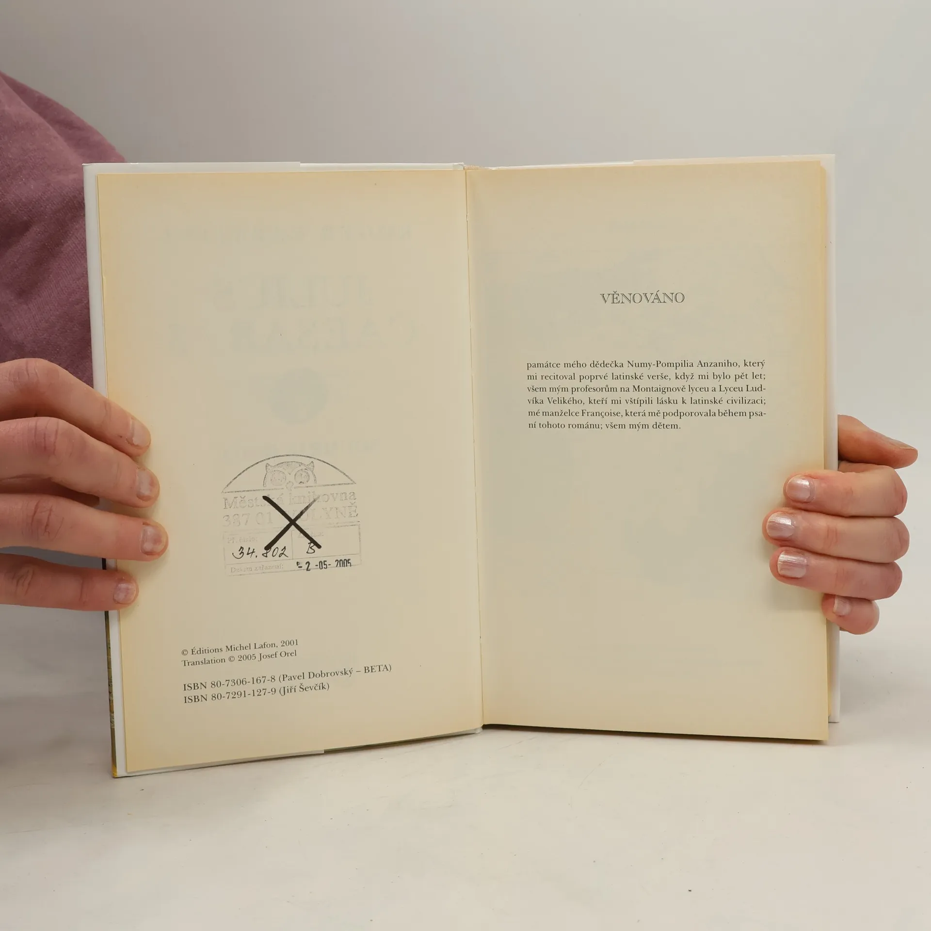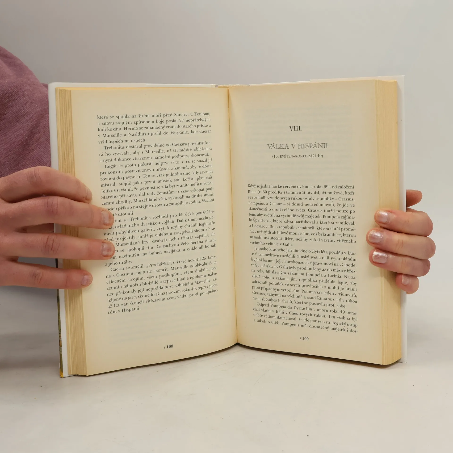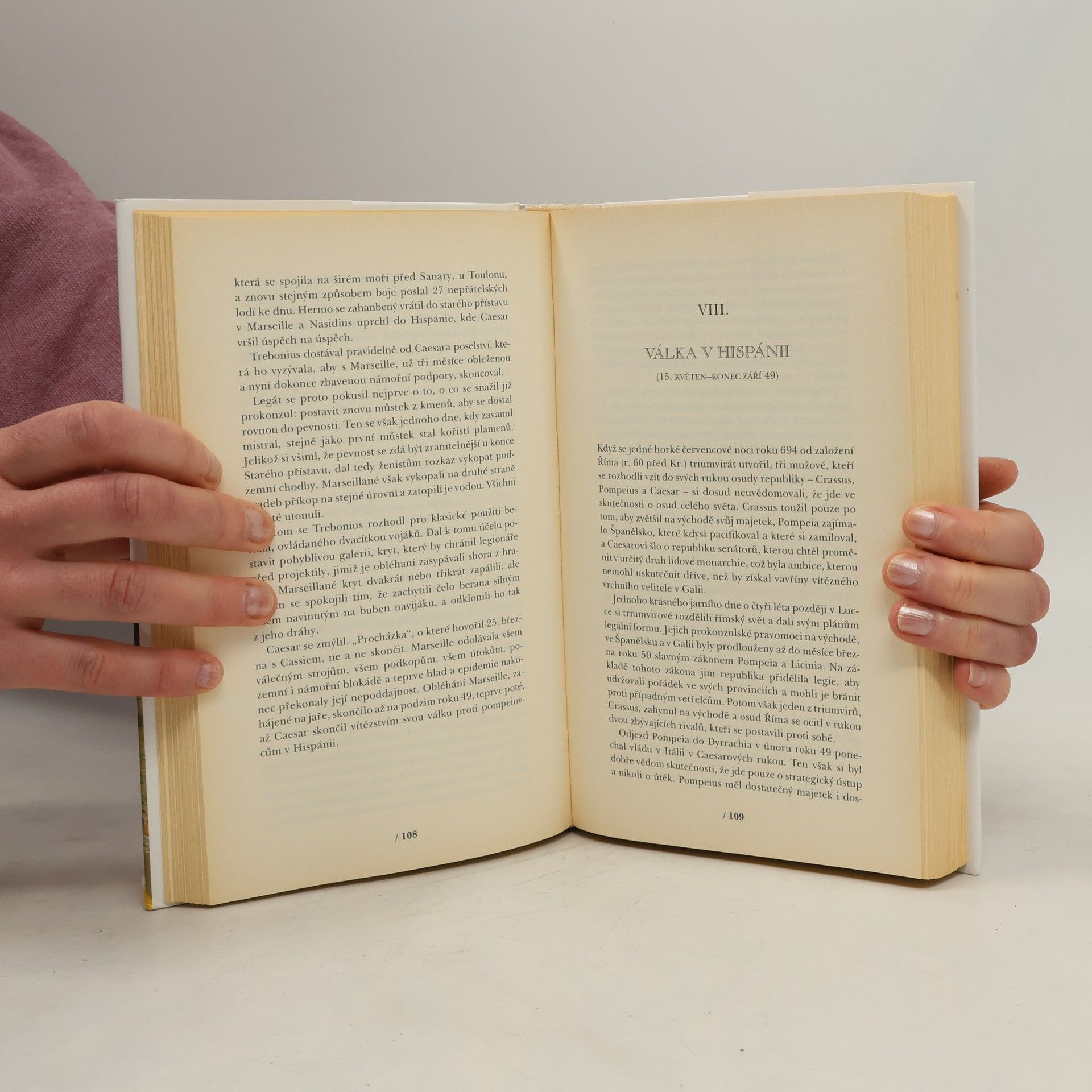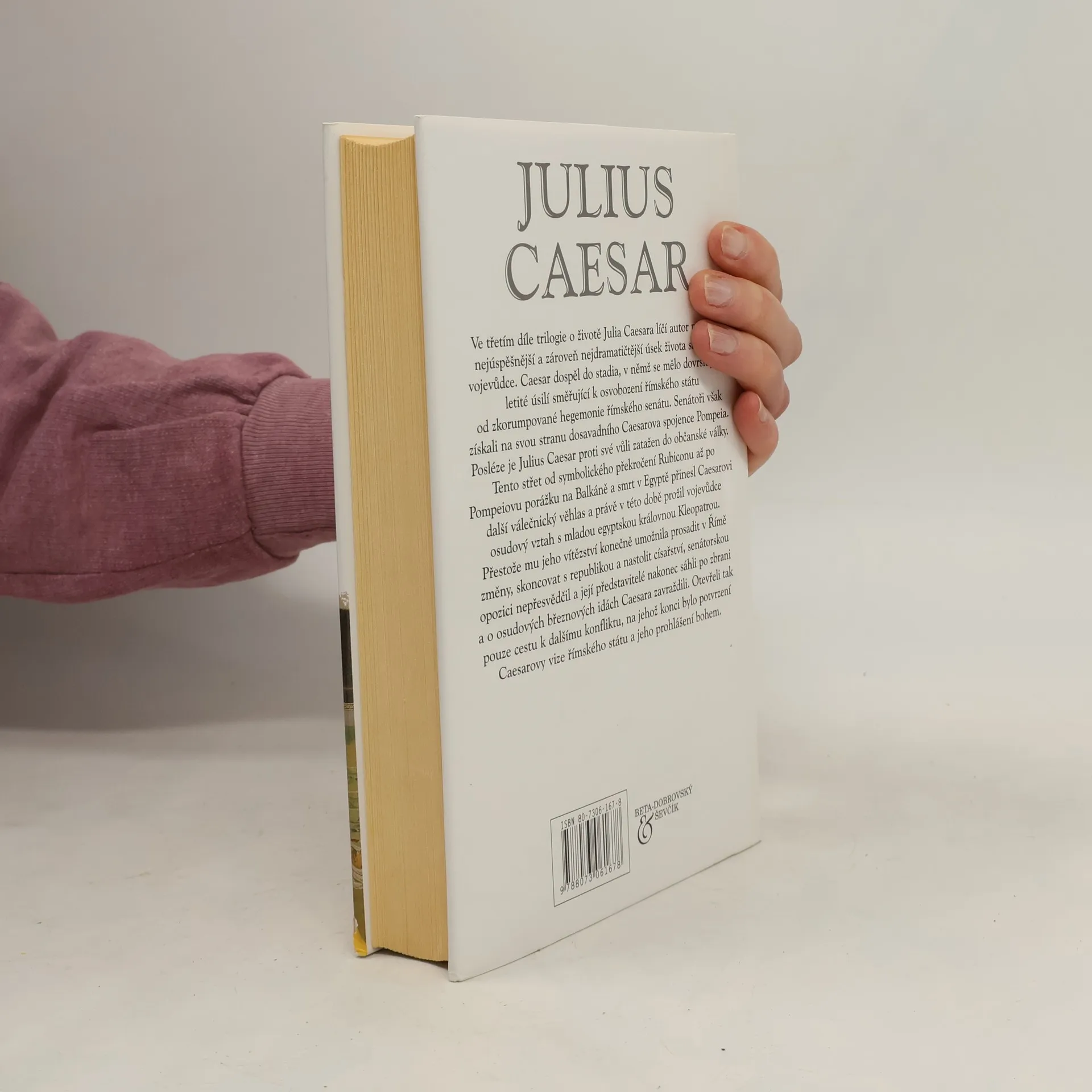 Podtitul: Soumrak boha Závěrečná část historické trilogie o životě římského vojevůdce, státníka a spisovatele se odehrává v letech 52-44 před Kristem. Prokonzul Gaius Julius Caesar obnoví po porážce vzbouřených Bellovaků pořádek v Galii. Všechny kmeny, připojené k mírovým smlouvám, sjednotí v jednu provincii pod nadvládou Říma. Po smrti Crassa se triumvirát rozpadl a Pompeius se snaží s pomocí senátorů soustředit veškerou moc do svých rukou. Mezi Caesarem, který odmítne rozpustit své legie a vydává se v jejich čele do Říma, a jeho bývalým spojencem a přítelem, se rozpoutá občanská válka. K jejich rozhodujícímu střetnutí dojde na území Řecka v bitvě u Farsalu. Pompeius uprchne do Egypta, kde je zavražděn. Caesar zde vojensky zasáhne do mocenských bojů a po skončení alexandrijské války dosadí na trůn Kleopatru. Podaří se mu potlačit povstání pontského krále Farnaka a zvítězí i v severní Africe nad posledními přívrženci Pompeia. Po triumfálním návratu do Říma má jako konzul, tribun a doživotní diktátor jedinečnou možnost uskutečnit své záměry. V březnu roku 44 před Kristem je však během zasedání senátu, kde má být prohlášen králem, zavražděn zastánci republiky.