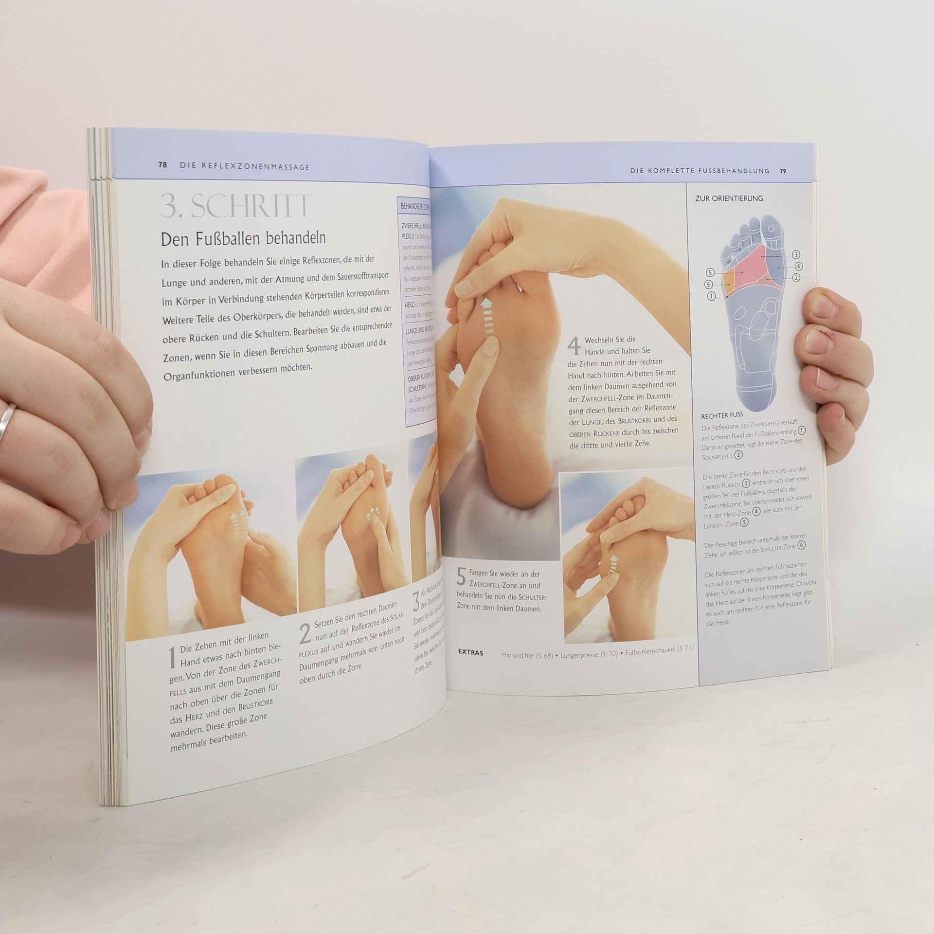 Reflexzonenmassage ist sanfte Therapie mit Hand und Fuß. Ein leichter Druck auf den richtigen Punkt aktiviert die Selbstheilungskräfte des Körpers, reduziert Stress und fördert das allgemeine Wohlbefinden Dieses Buch von zwei der international angesehensten Experten für Reflexzonentherapie gibt dem Leser eine übersichtliche Darstellung der Reflexzonen an Händen und Füßen. Alle Massagetechniken werden in anschaulichen Schritt-für-Schritt-Sequenzen erklärt. Ob es um besondere Bedürfnisse von Schwangeren, Babys oder älteren Menschen geht oder einfach um die Entlastung im Alltag – Reflexzonenmassage eignet sich als Therapieunterstützung bei vielerlei Beschwerden und für alle Lebenslagen.