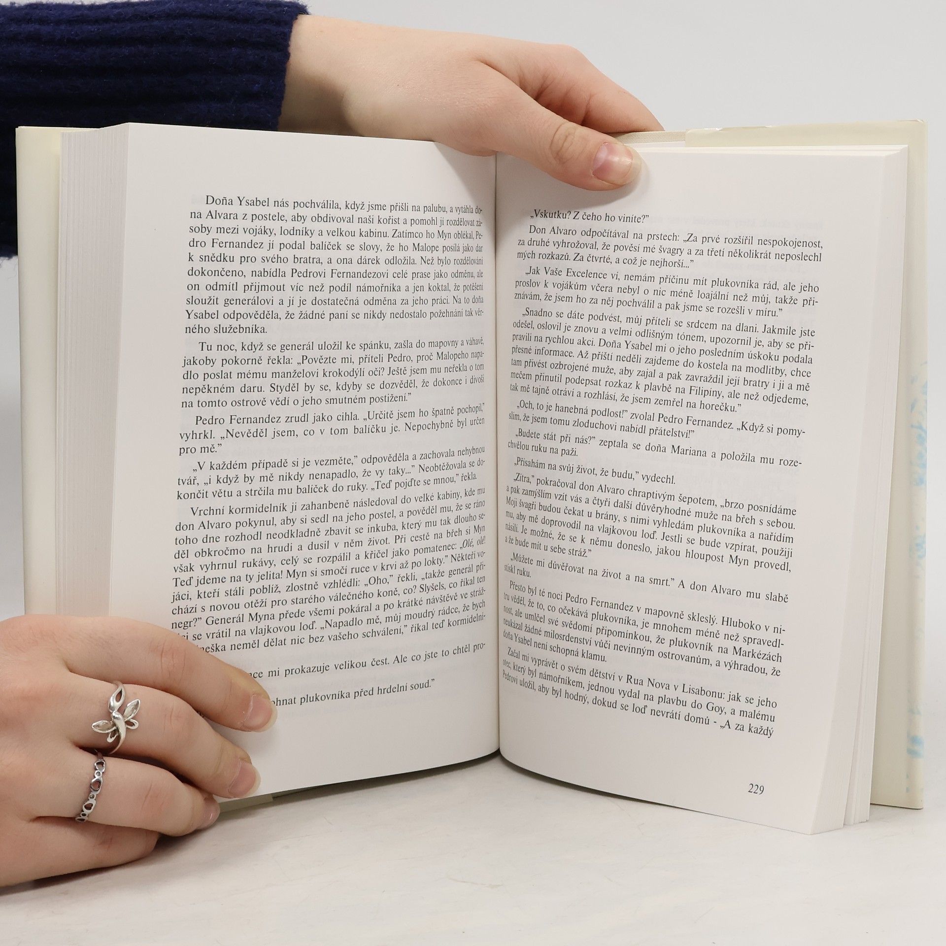 Historický román o španělské námořní výpravě za kolonizací Šalomounových ostrovů. Její plavba je naplněna neustálými šarvátkami, sváry a intrikami mezi vojáky a námořníky i mezi jednotlivými členy posádky, kteří zápasí o moc a peníze. Intrikám se nevyhne ani generálova žena, která se po smrti svého manžela ujímá vedení výpravy. Autor zvolil formu vyprávění očitého svědka událostí, které zrekonstruoval na základě zápisků vrchního kapitána a dalších dobových dokumentů.... celý text